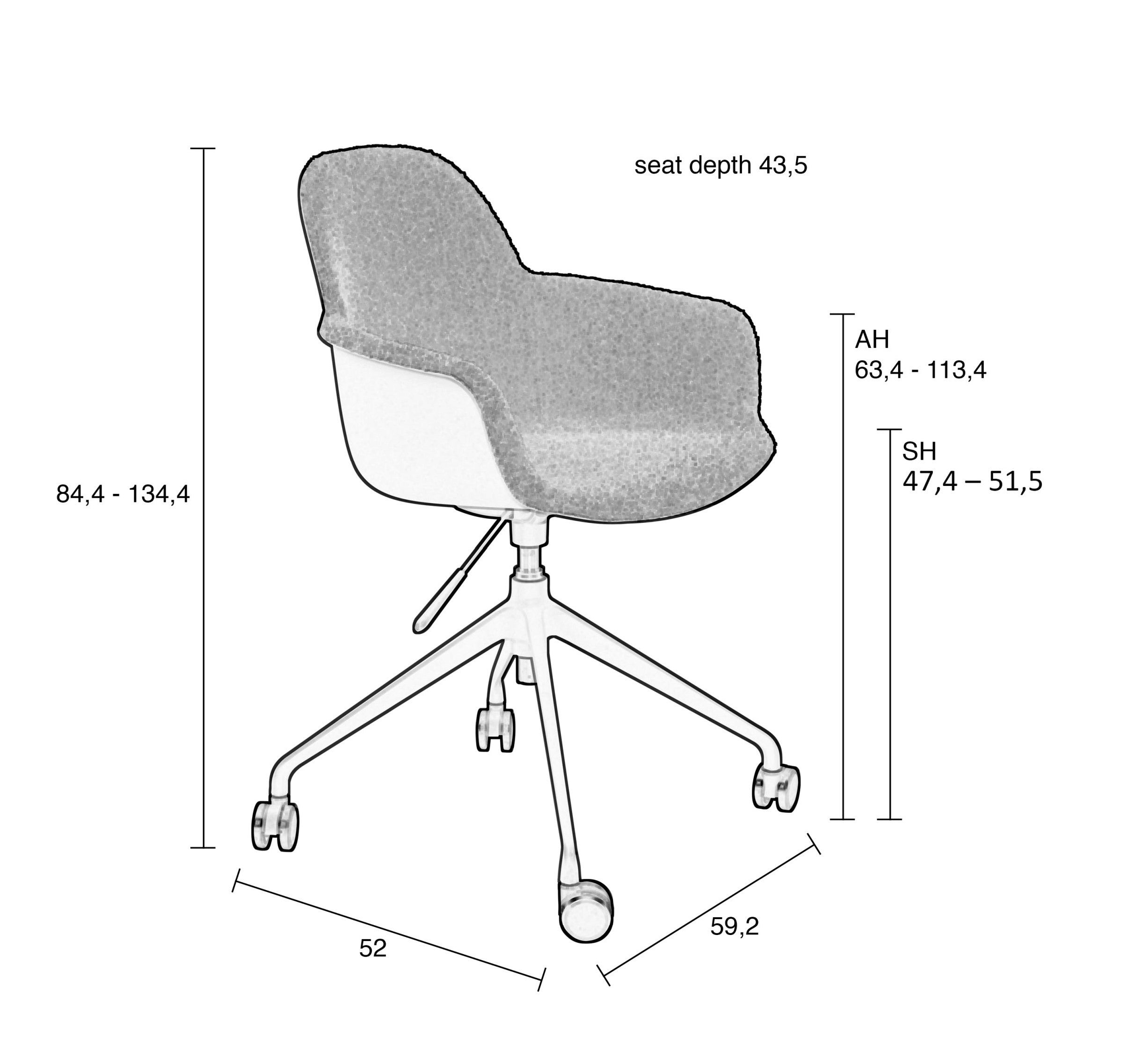 Wysokość podłokietników: 63,4 - 113,4 cm