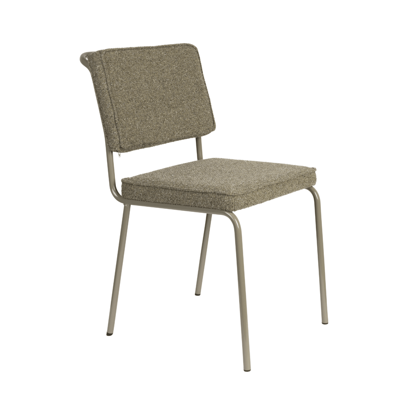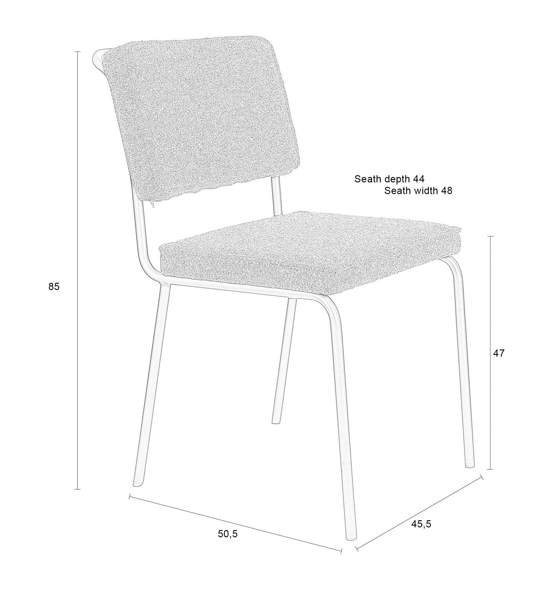 Stolička Buddy bola navrhnutá s dôrazom na pohodlie, má ľahkú konštrukciu a mäkké čalúnenie z tkaniny boucle. Čalúnenie je vyrobené zo 100% recyklovaných materiálov, čo robí stoličku ekologickou voľbou. Rám stoličky plynule prechádza do úchytu na zadnej strane, čo pridáva ergonomický detail a uľahčuje manipuláciu.