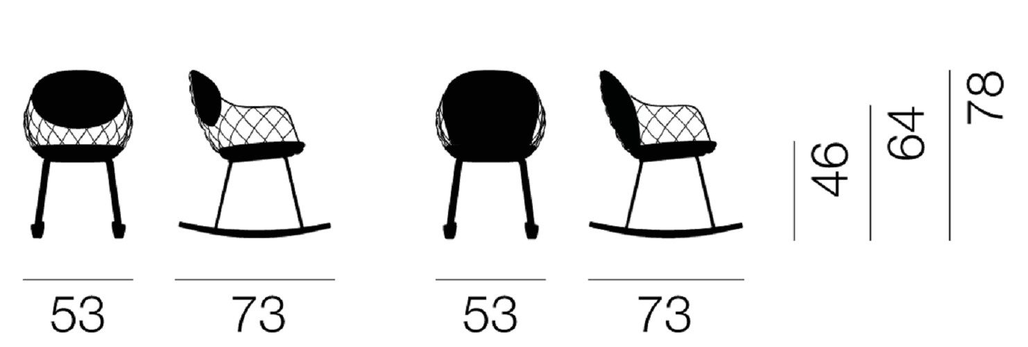 Hojdacie kreslo Piña, navrhnuté Jaime'm Hayónom pre značku Magis, je výnimočná kombinácia súčasného dizajnu s nadčasovou formou. Mriežková konštrukcia operadla vyrobená z oceľového prúta s práškovým nástrekom odkazuje na štruktúru ananásu – rozpoznávacieho znaku celej kolekcie. Charakteristické, zakrivené nohy z masívneho jaseňového dreva dodávajú kreslu vizuálnu ľahkosť a umožňujú jemné hojdanie, čím prinášajú prvok relaxácie do každodenného používania.