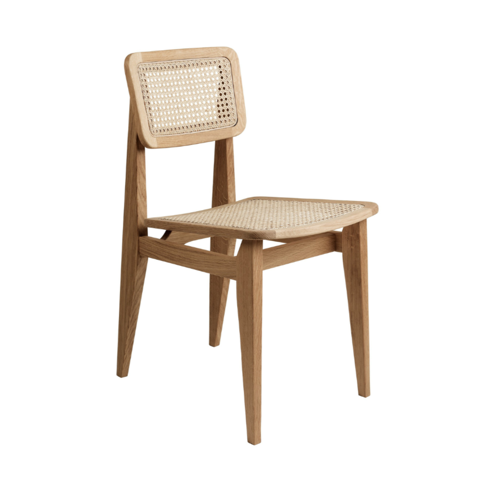 Navrhnuté v roku 1947 Marcelom Gascoinom stolička C-Chair je ikonou francúzskeho povojnového modernizmu, ktorá spája funkčnosť s nadčasovou eleganciou. Verzia so sedadlom a opierkou z prírodného ratanového pletenia a rámom vyrobeným z olejovaného amerického orecha vystavuje majstrovstvo stolárskeho remesla a ľahkosť formy.