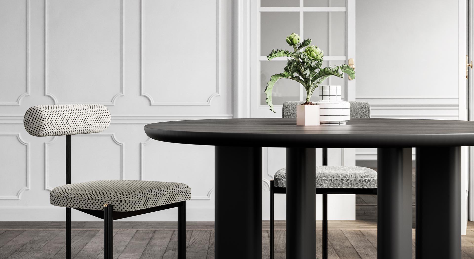Stolička Caillou s čiernymi bodkami je elegantné a pohodlné sedenie, ktoré sa vyznačuje nízkym a širokým operadlom. Táto jedinečná silueta nie je len rozpoznateľná, ale tiež zvyšuje komfort používania, vytvárajúc oporu, ktorá dokonale podopiera a obklopuje telo.