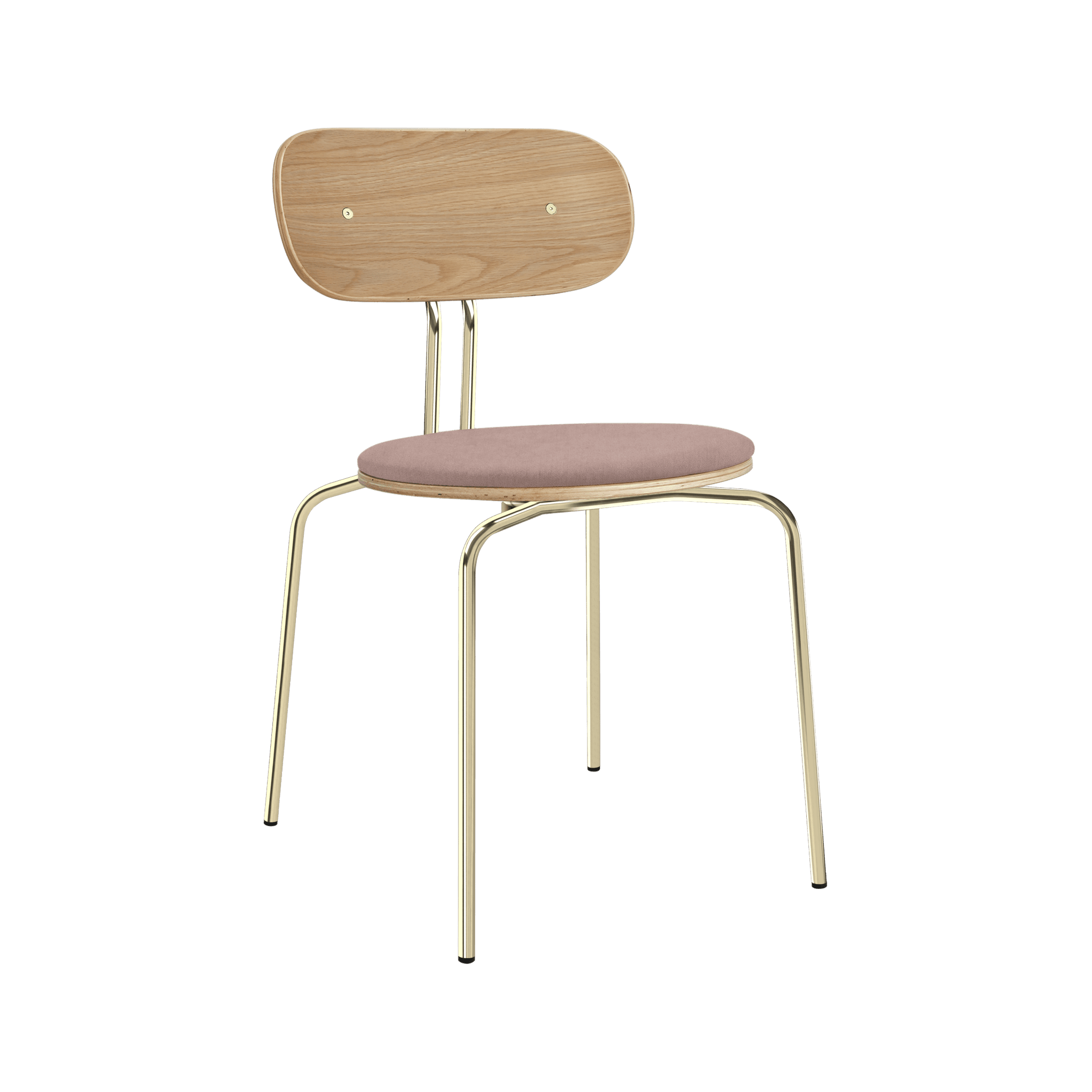 Stolička Curious je elegantný, ľahký a minimalistický nábytok, vyrobený z dubového dyhy. Je dostupná s mosadznými alebo čiernymi nohami, a voliteľný sedák poskytuje dodatočný komfort. Môžete si vybrať sedák z 17 farieb látky Horizons, vyrobenej zo 100% recyklovaných materiálov, ako aj v hnedej alebo bielej farbe látky Teddy Bear.