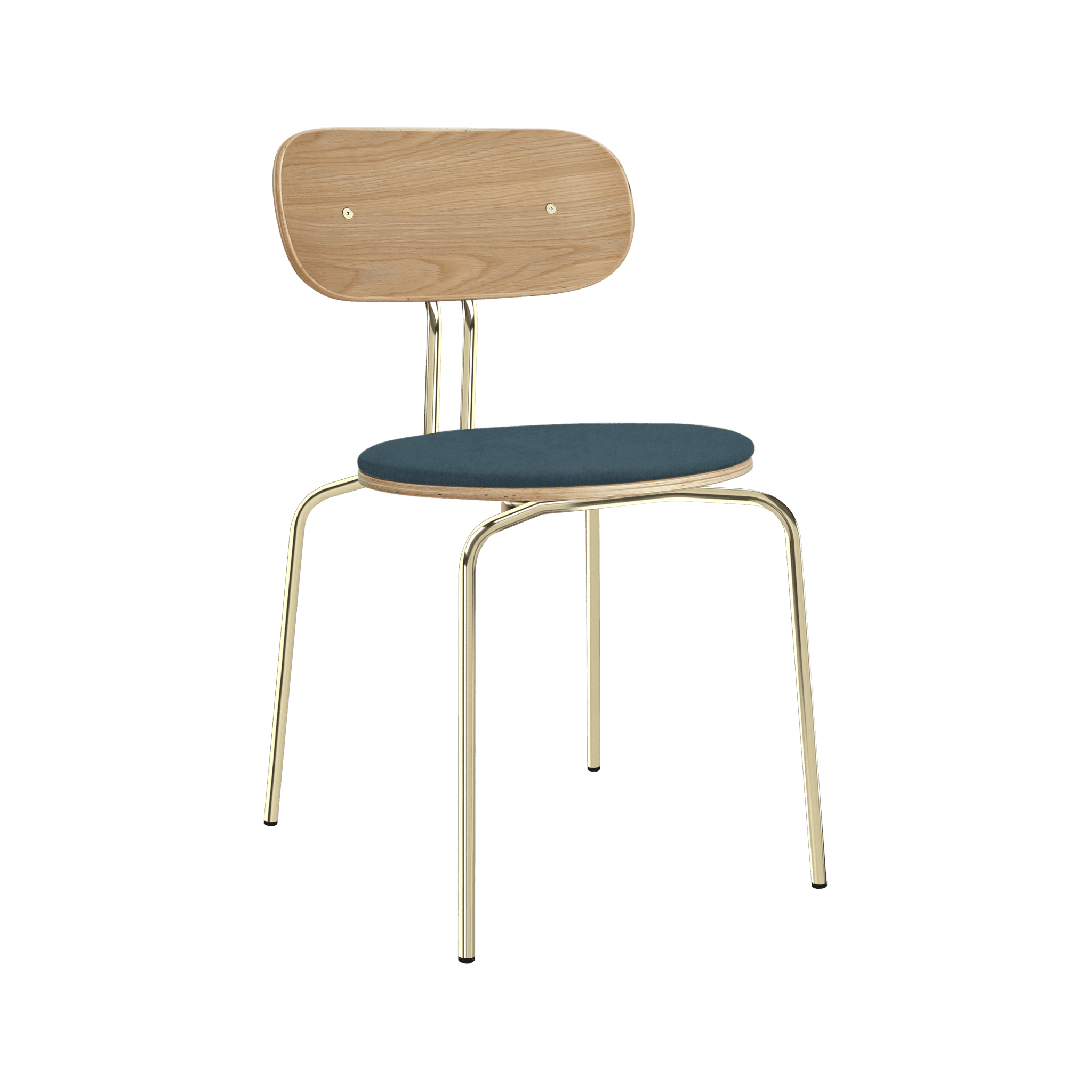 Stolička Curious je elegantný, ľahký a minimalistický nábytok, vyrobený z dubového dyhy. Je dostupná s mosadznými alebo čiernymi nohami, a voliteľný sedák poskytuje dodatočný komfort. Môžete si vybrať sedák z 17 farieb látky Horizons, vyrobenej zo 100% recyklovaných materiálov, ako aj v hnedej alebo bielej farbe látky Teddy Bear.