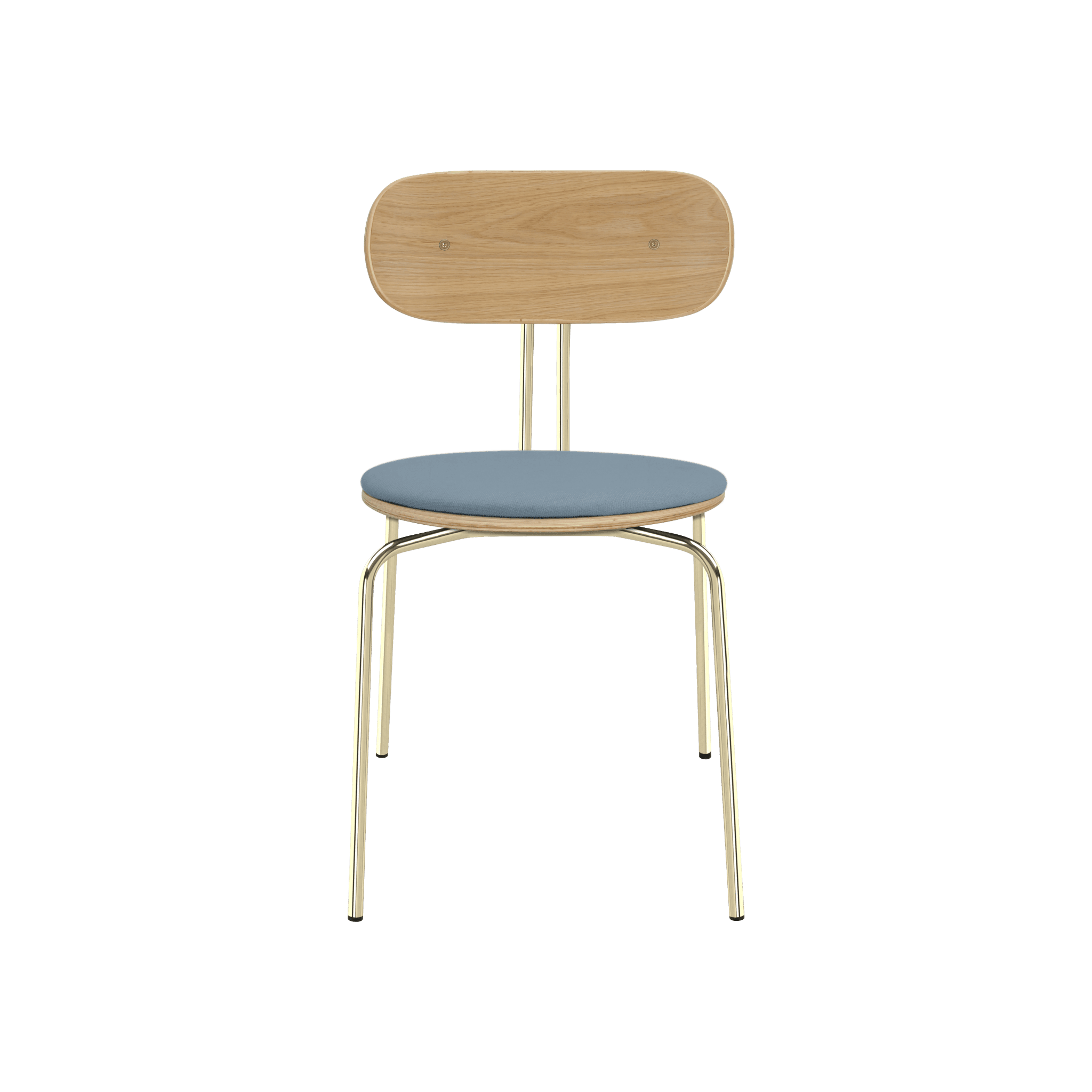 Stolička Curious je elegantný, ľahký a minimalistický nábytok, vyrobený z dubového dyhy. Je dostupná s mosadznými alebo čiernymi nohami, a voliteľný sedák poskytuje dodatočný komfort. Môžete si vybrať sedák z 17 farieb látky Horizons, vyrobenej zo 100% recyklovaných materiálov, ako aj v hnedej alebo bielej farbe látky Teddy Bear.