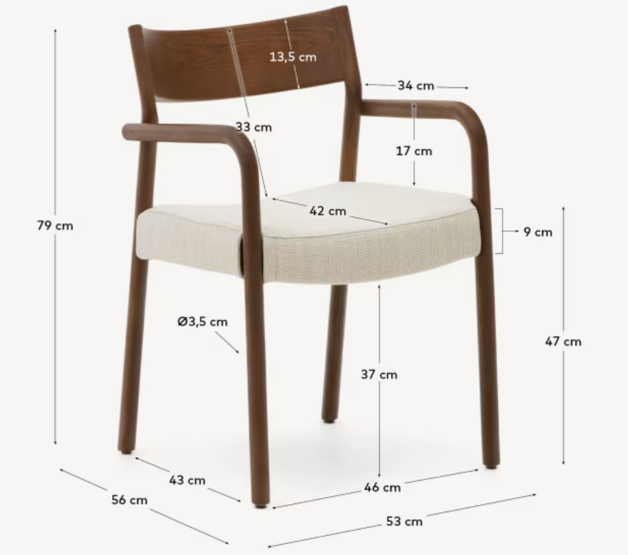 Stolička Falconera je elegantná interpretácia modernej klasiky, kde sa útulnosť látky stretáva s výraznosťou tmavej dubovej základne. Jednoduché línie konštrukcie, spojené s organickým tvarom opierok rúk, vytvárajú vizuálne harmonický, a zároveň pohodlný a trvácny kus nábytku. Čalúnenie z látky typu šenil v béžovej farbe prináša do interiéru mäkkosť, textúru a nadčasový štýl, ktorý sa dokonale hodí do aranžmánov v duchu japandi, boho alebo modernej klasiky.