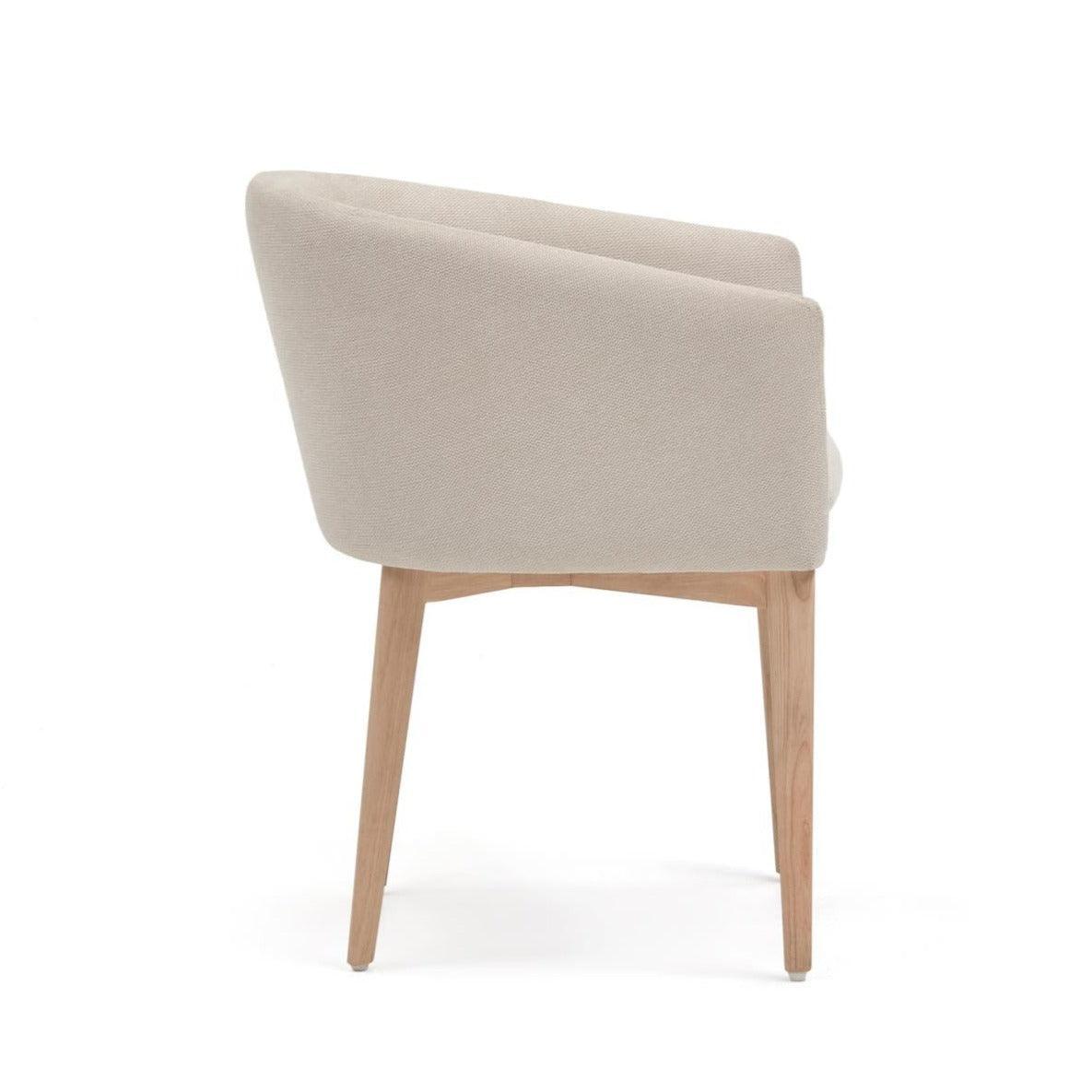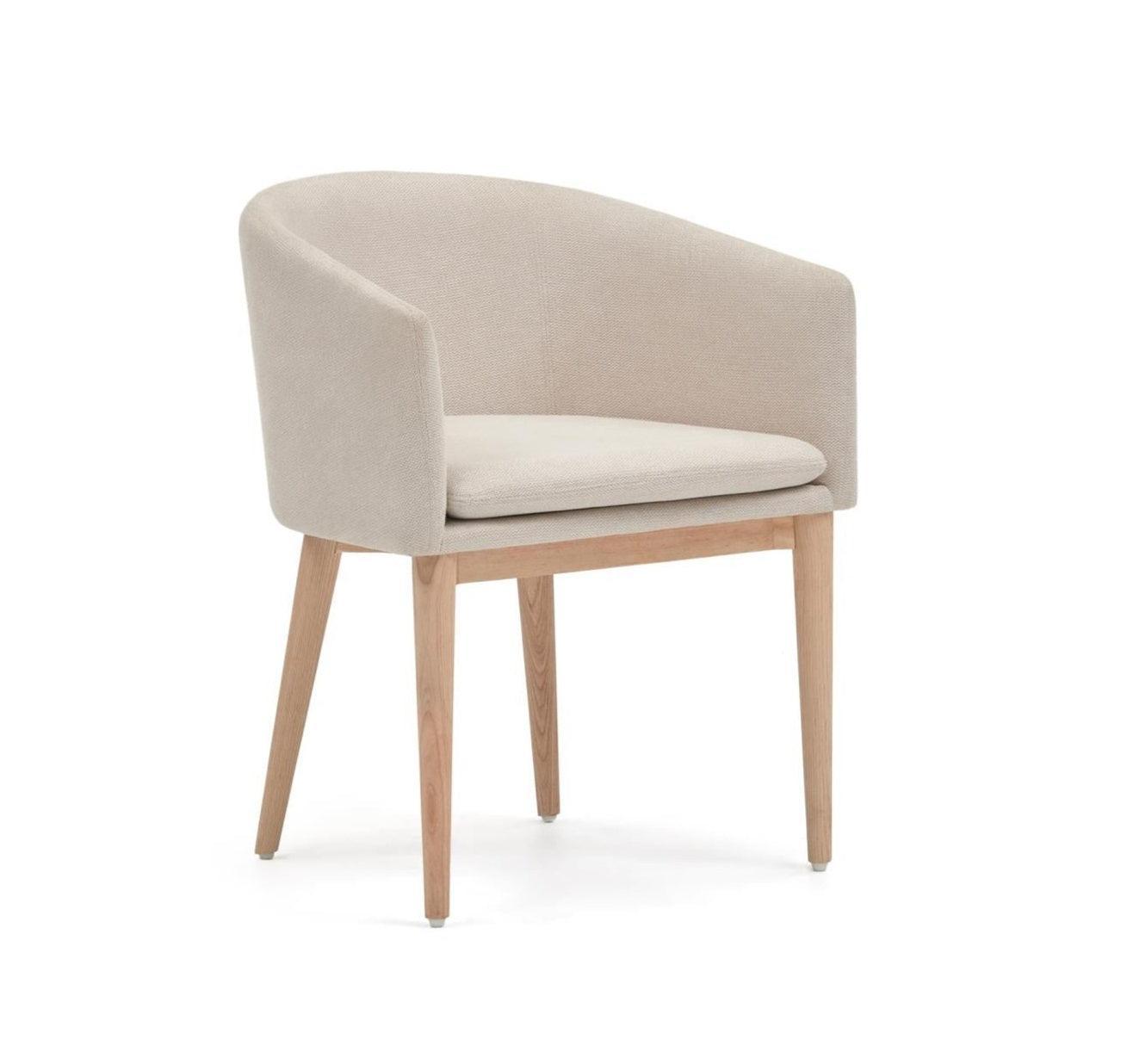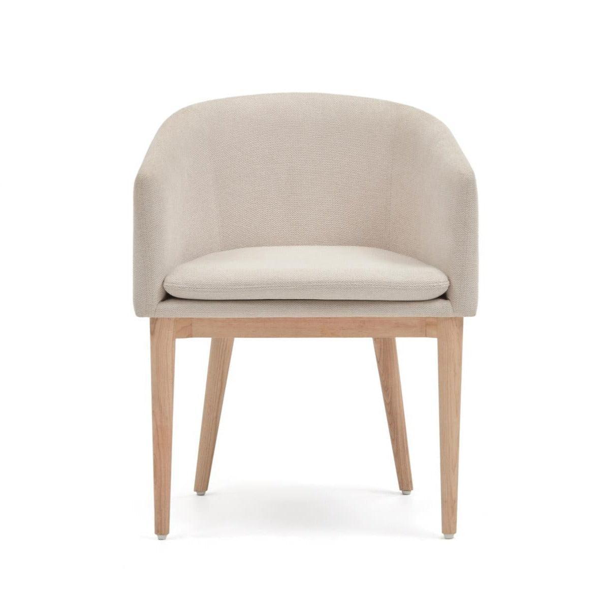 Čalúnená s jemným zamatom, béžová stolička Harlan zaručuje jednoduchú údržbu, čo je dôležitou výhodou pri každodennom používaní. Polstrované operadlo s podrúčkami poskytuje pohodlie aj pri dlhodobom sedení, umožňujúc relax a komfort.