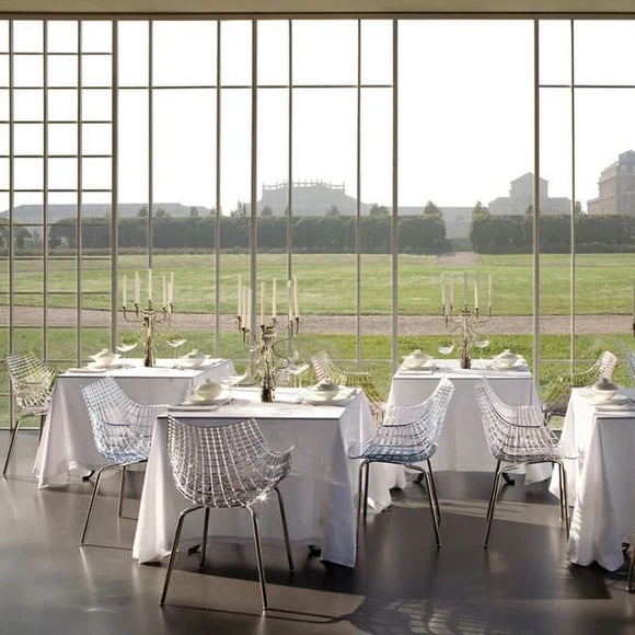 Stolička Meridiana, navrhnutá Christophe’om Pilletom pre značku Driade v roku 2004, je nadčasová ikona dizajnu, ktorá čerpá inšpiráciu z fasetovaných povrchov diamantov. Charakteristická konštrukcia sedadla odráža svetlo jedinečným spôsobom, čím vytvára elegantný vizuálny efekt.