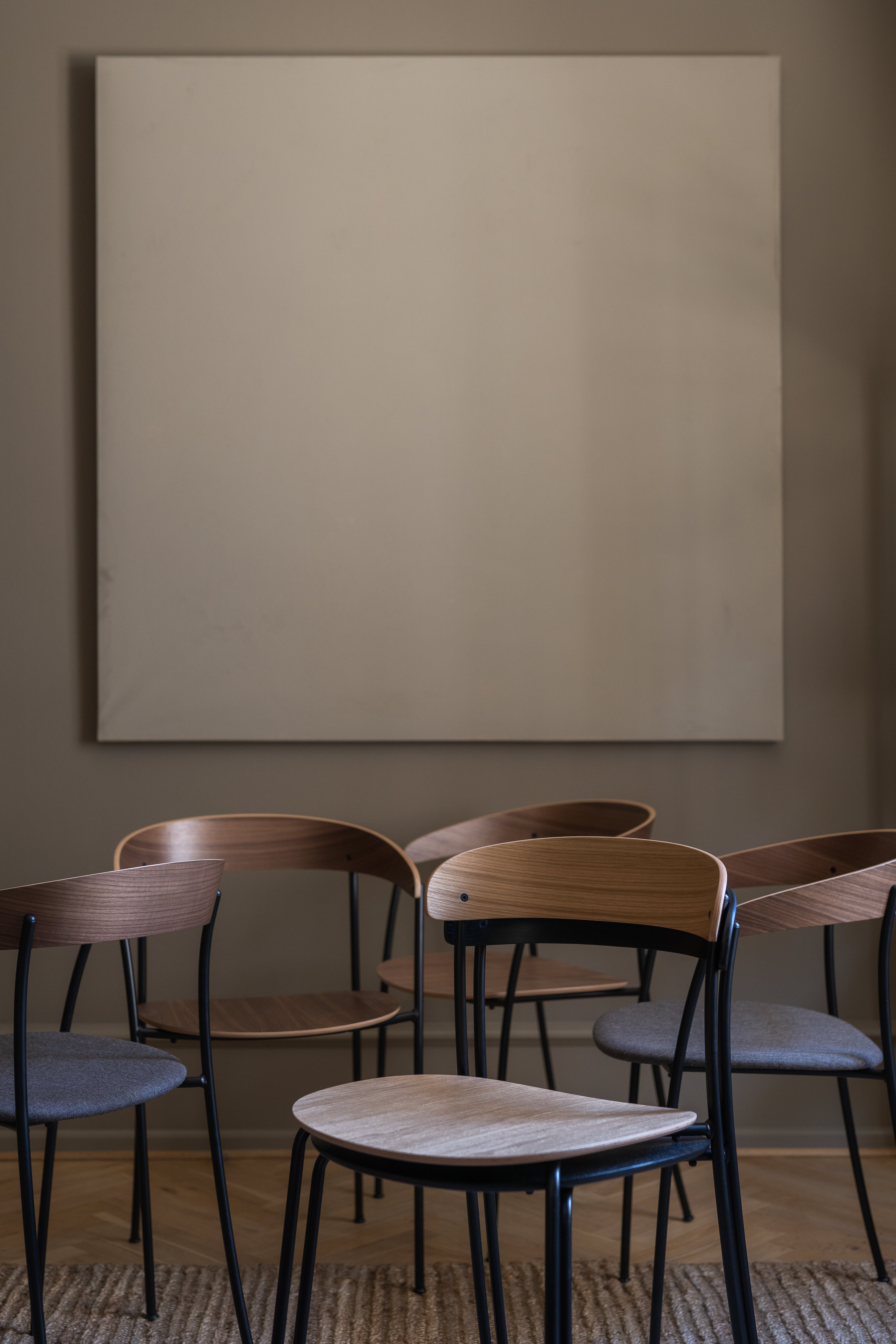 Stolička Missing v orechovej dyhe je nadčasový kus nábytku, ktorý spája eleganciu a funkčnosť. Jej jemná forma a kvalitné materiály zabezpečujú, že sa skvele hodí do súkromných aj komerčných priestorov, pričom im dodáva rafinovaný charakter.