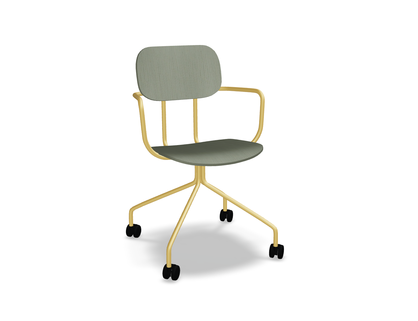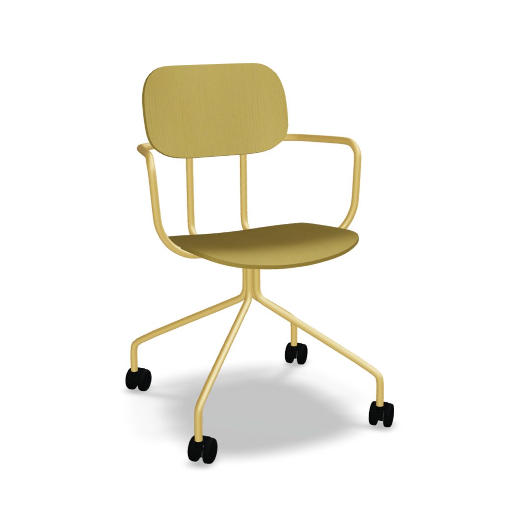 Pracovná stolička New School, inšpirovaná klasickou formou školského kresla, ponúka množstvo konfigurácií ideálnych pre rôzne kancelárske zóny. Verzia s štyrmi ramenami na kolieskach zvyšuje funkčnosť, uľahčuje pohyb pri stole a prispôsobenie polohy aktuálnym potrebám. Možnosť personalizácie povrchových úprav a voliteľných opierok rúk robí z tejto stoličky všestranné riešenie, ktoré sa skvele hodí ako do kancelárií, tak aj do vzdelávacích a workshopových zariadení.