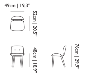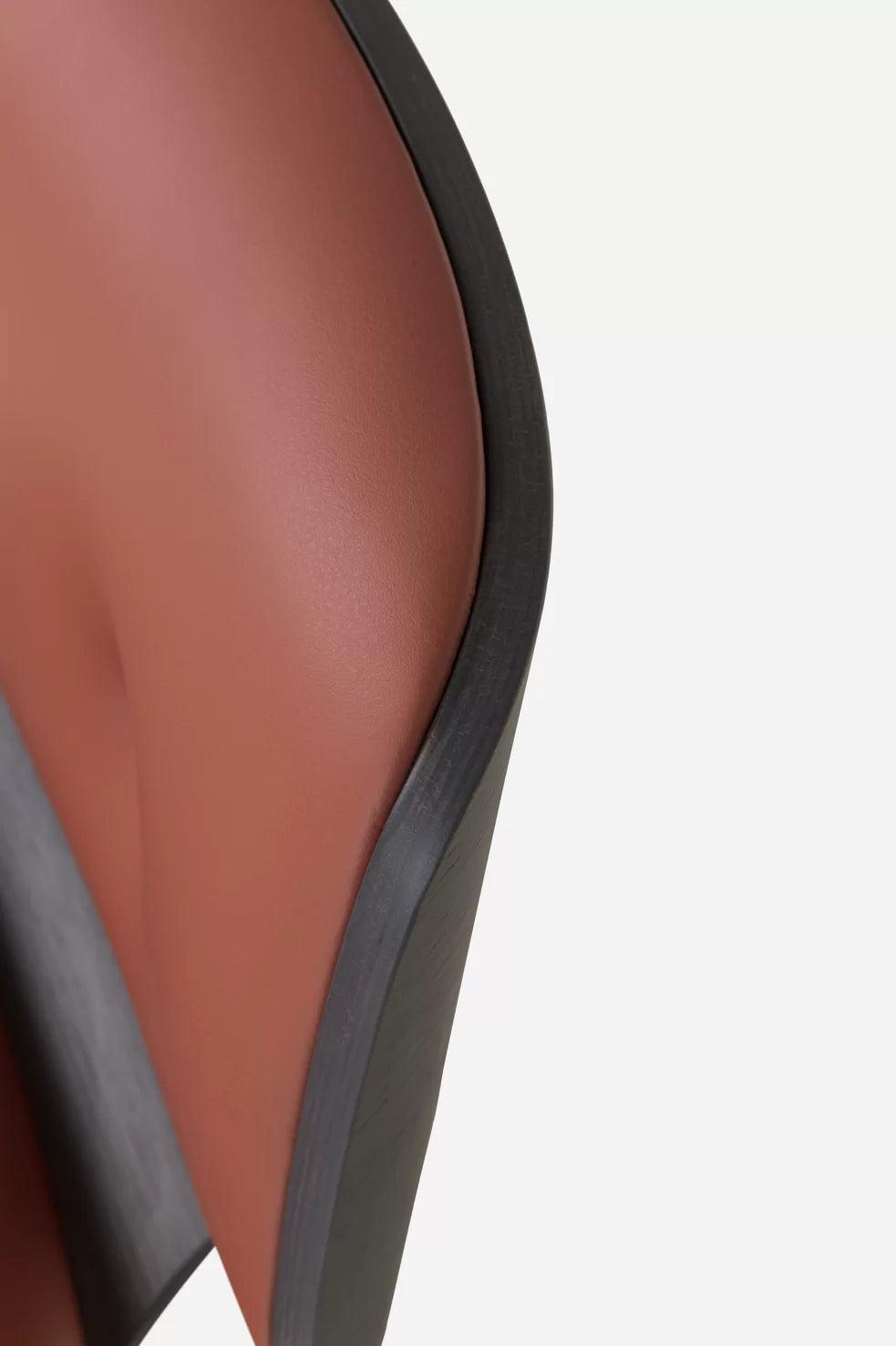 Materiał: sklejka gięta z okleiną dębową, nogi z litego drewna dębowego, pianka CMHR