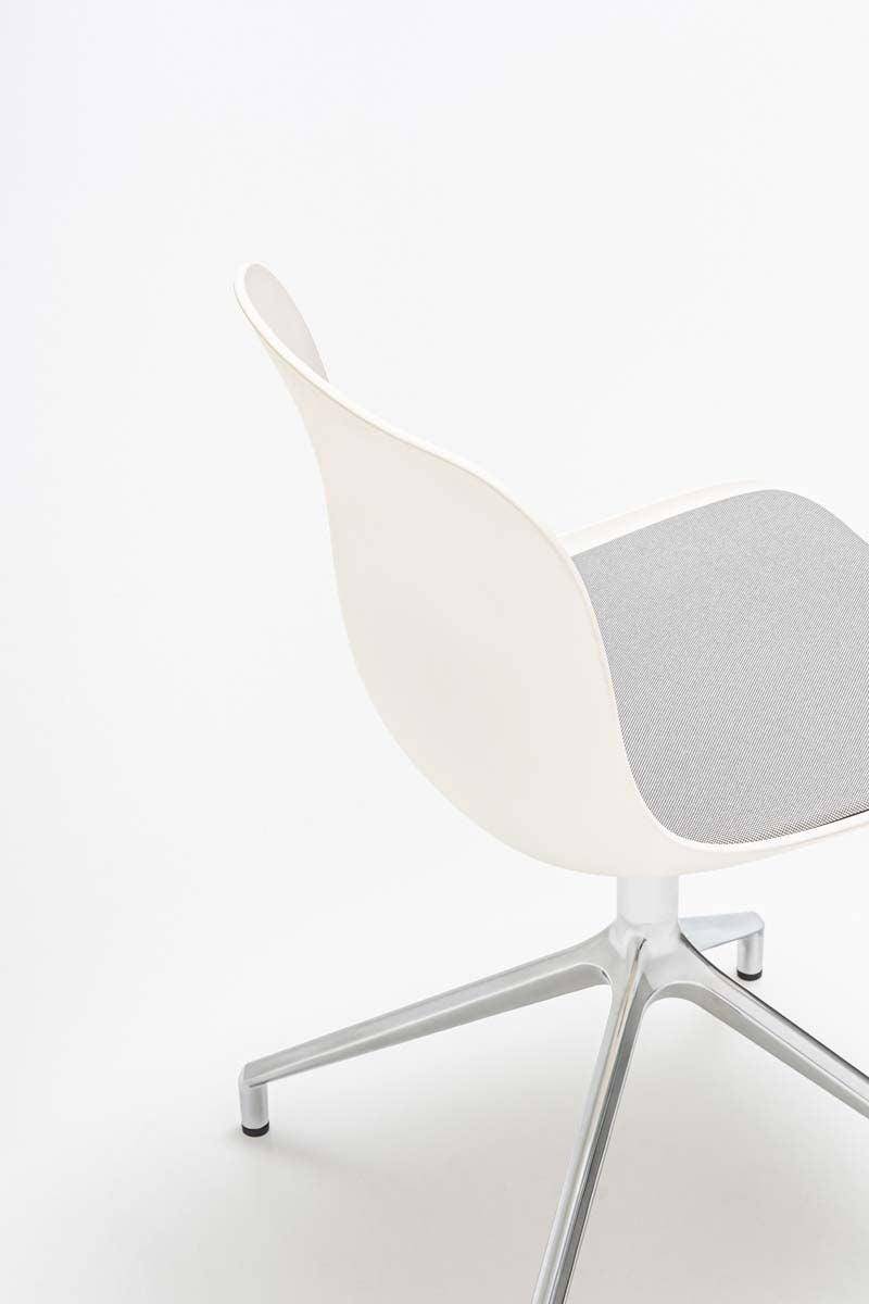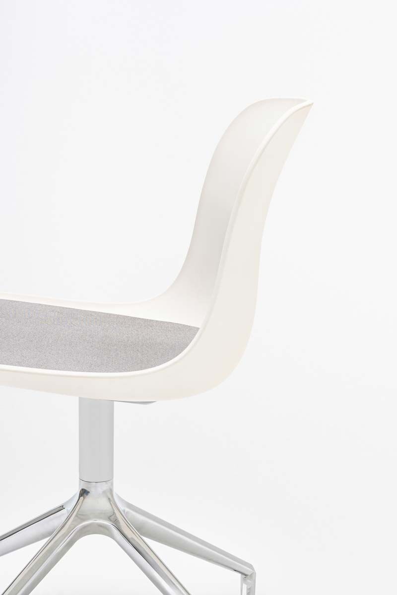 Sedadlo v tvare nádoby je vyrobené z odolného plastu, ktorý je ľahko udržiavateľný, a čalúnený vankúš zvyšuje komfort používania. Podstavec z lešteného hliníka dodáva kreslu elegantný charakter, a voliteľné kolieska podporujú dynamickú postavu a ľahkosť presúvania. Vyrobené z recyklovateľných materiálov, kreslo Baltic 2 Remix sa dokonale hodí do kancelárií, konferenčných miestností a verejných priestorov.