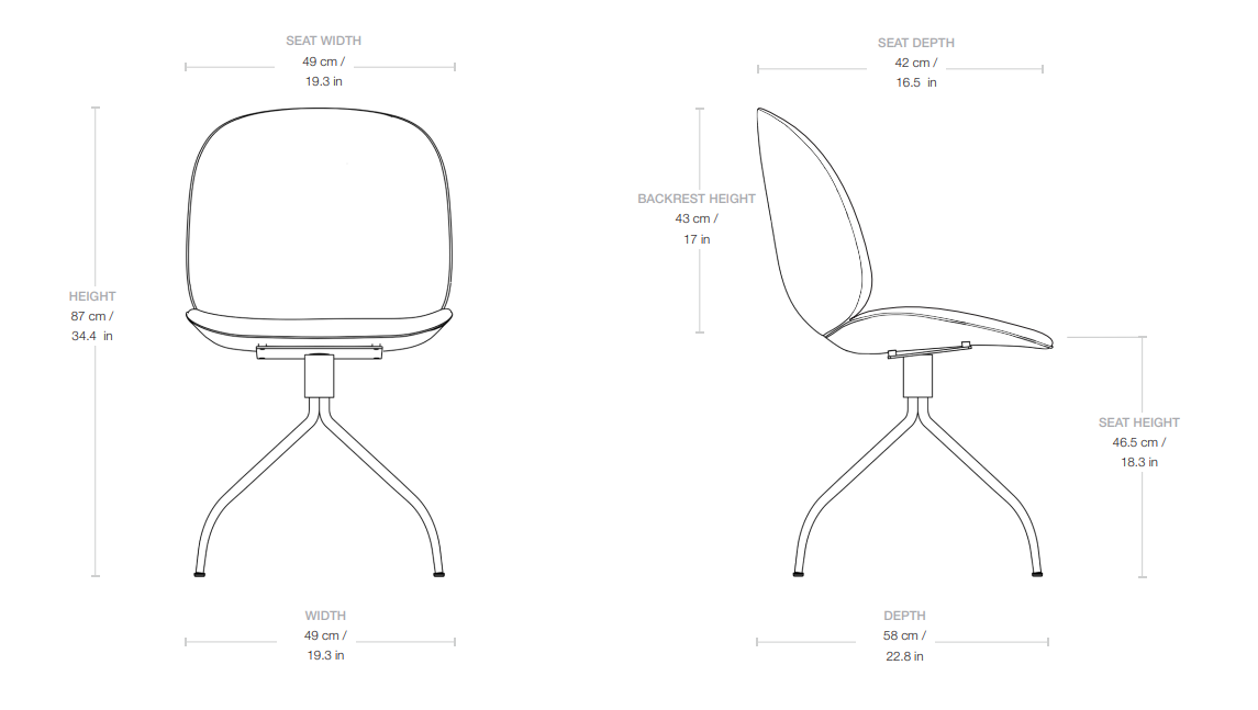 Otočná stolička Beetle na štyroch nohách ideálne vyhovuje potrebám moderného pracovného miesta doma, v kancelárii alebo v hybridných priestoroch. Je to dokonalá kombinácia ergonómie, estetiky a trvanlivosti, navrhnutá s ohľadom na každodenné pohodlie.