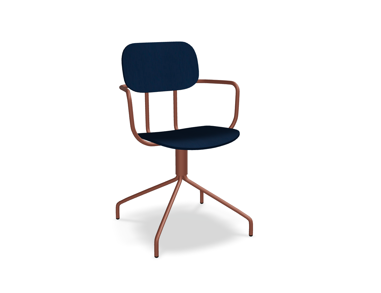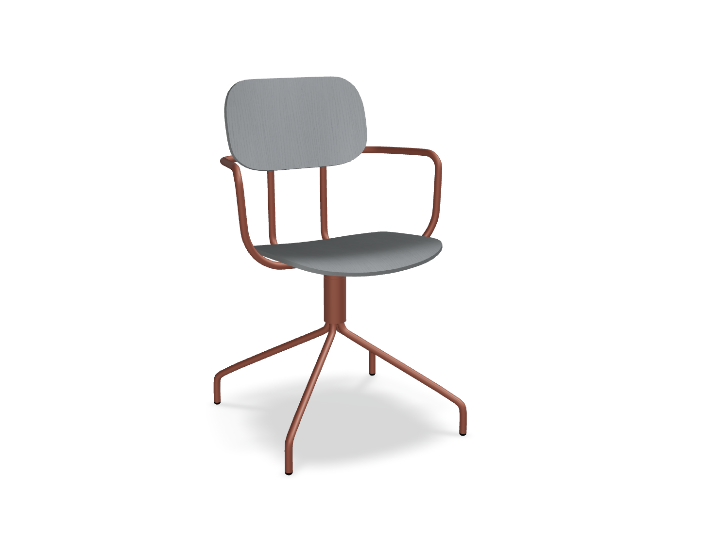 Otáčacie kreslo New School je modernou reinterpretáciou klasickej formy školského kresla, ponúkajúce široký výber konfigurácií prispôsobených rôznym kancelárskym priestorom. V prevedení z preglejky a s otočnou základňou predstavuje praktický a štýlový doplnok do každého interiéru. Sedadlo otáčajúce sa o 360° umožňuje voľné vstávanie od stola a pohyb v rámci pracovného miesta, a voliteľné opierky rúk navyše zvyšujú komfort.