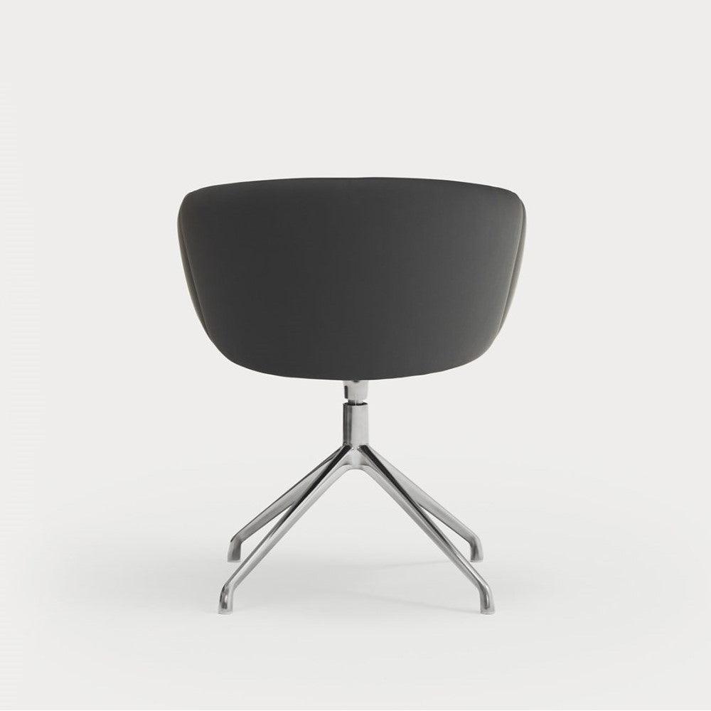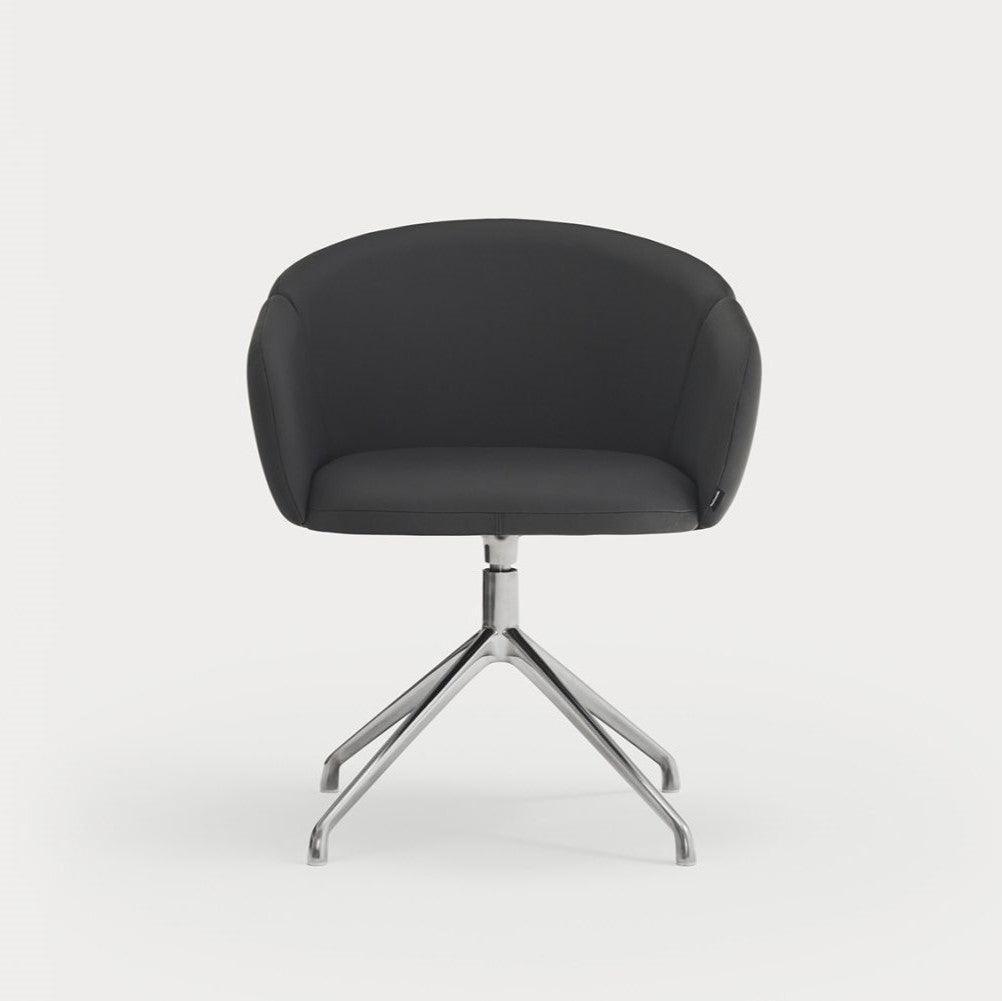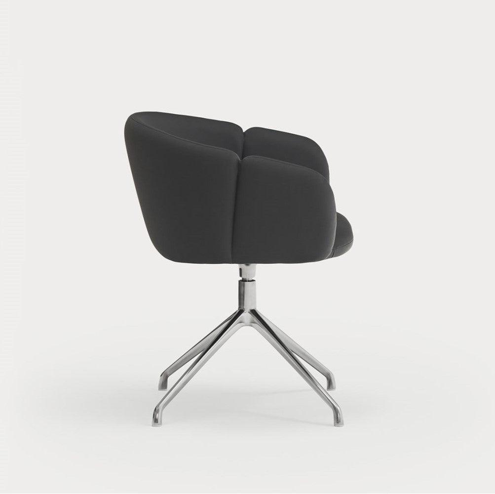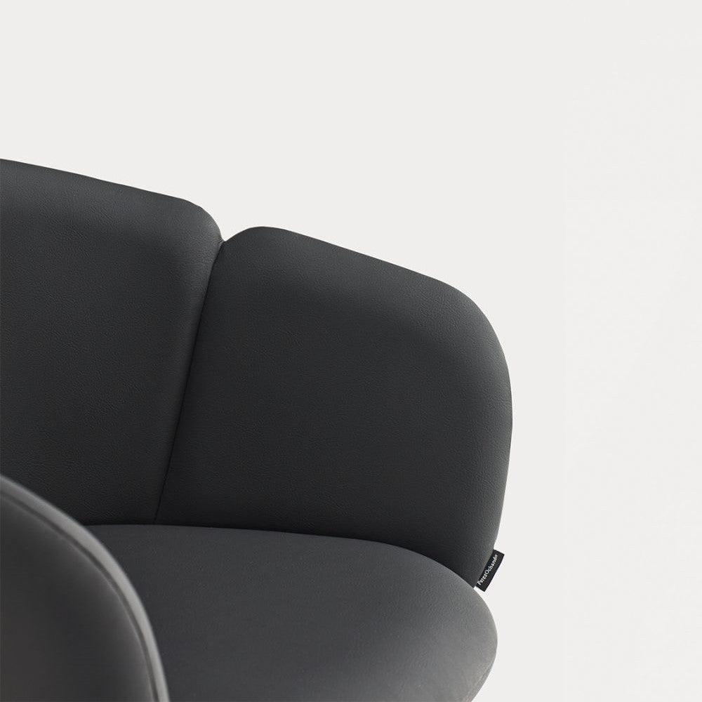 Krzesło obrotowe z podłokietnikami Add w czarnej skórze ekologicznej to nie tylko elegancki element wyposażenia, ale także gwarancja wyjątkowego komfortu i ergonomicznego wsparcia. Projektując to krzesło, priorytetem było stworzenie miejsca do pracy lub odpoczynku, które doskonale dopasowuje się do naturalnych krzywizn ciała. Całkowicie tapicerowane oparcie delikatnie wygina się, otulając użytkownika, co umożliwia swobodne poruszanie się i zmianę pozycji dzięki szerokiemu siedzisku.