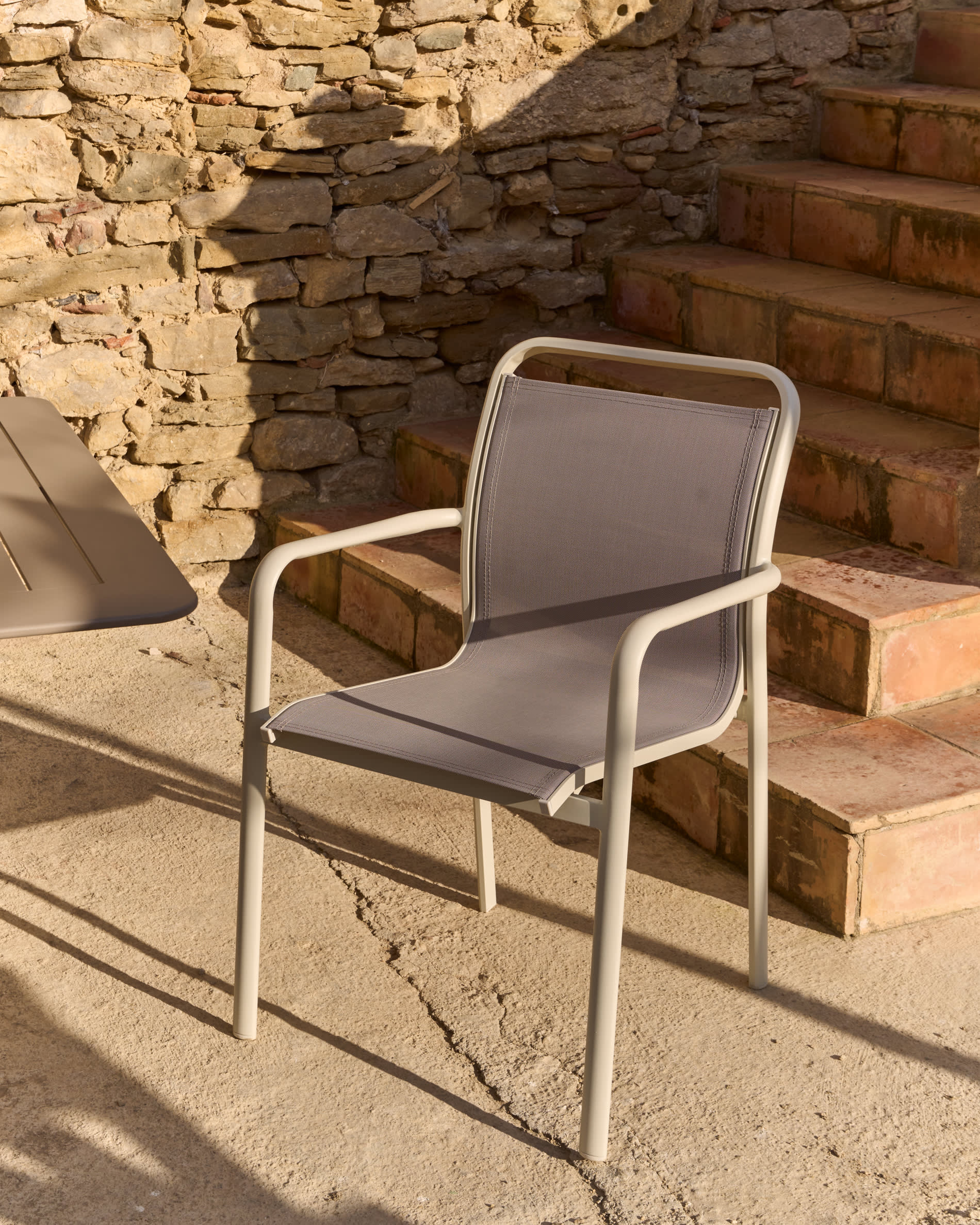 Stolička Luri je praktické a moderné riešenie na vnútorné aj vonkajšie použitie, ktoré spája pohodlie s vysokou trvácnosťou. Hliníková konštrukcia robí záhradnú stoličku ľahkou, a zároveň odolnou voči hrdzi, korózii a UV žiareniu, vďaka čomu je ideálna na terasu, balkón, do záhrady alebo jedálne. Sedadlo a opierka vyrobené z odolnej tkaniny zabezpečujú pohodlie pri sedení, dobrú ventiláciu a zachovanie tvaru aj pri intenzívnom, každodennom používaní.