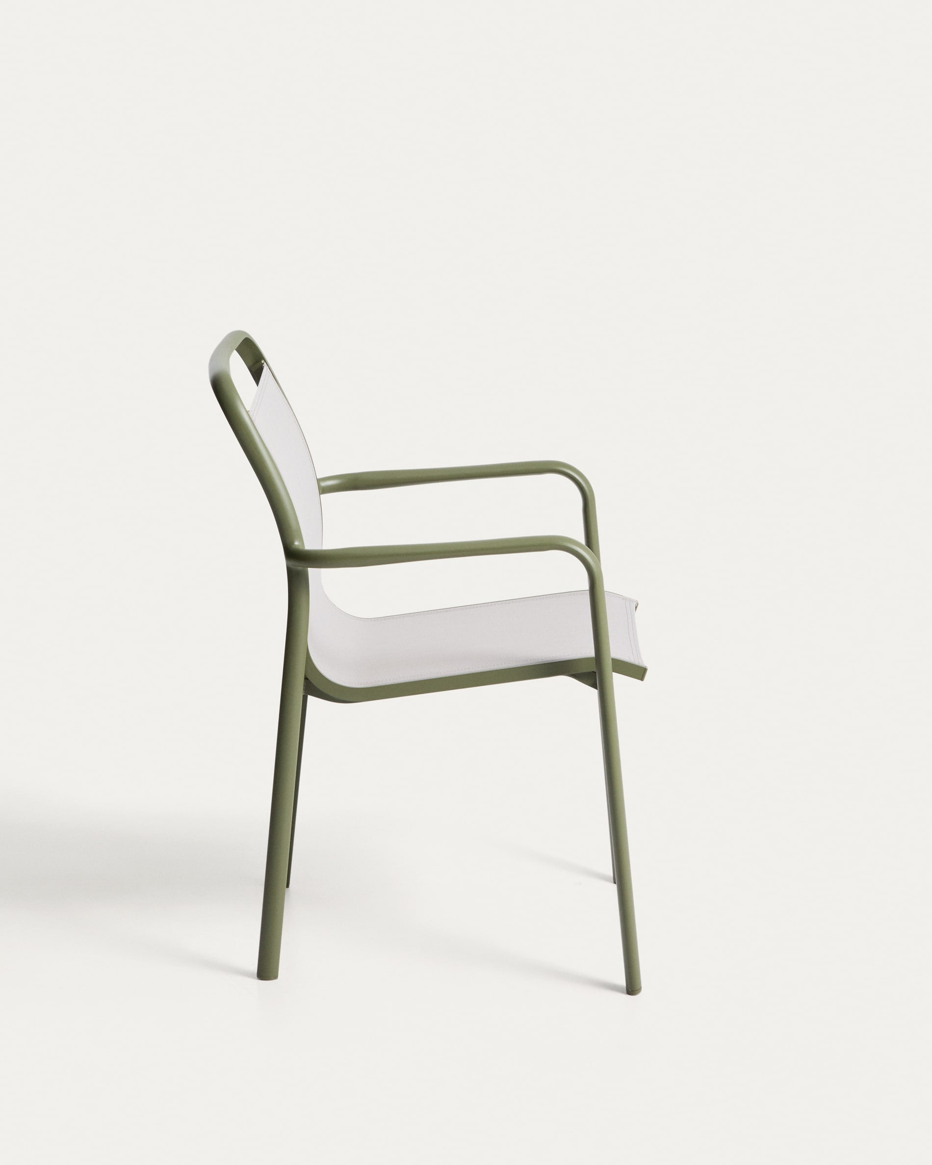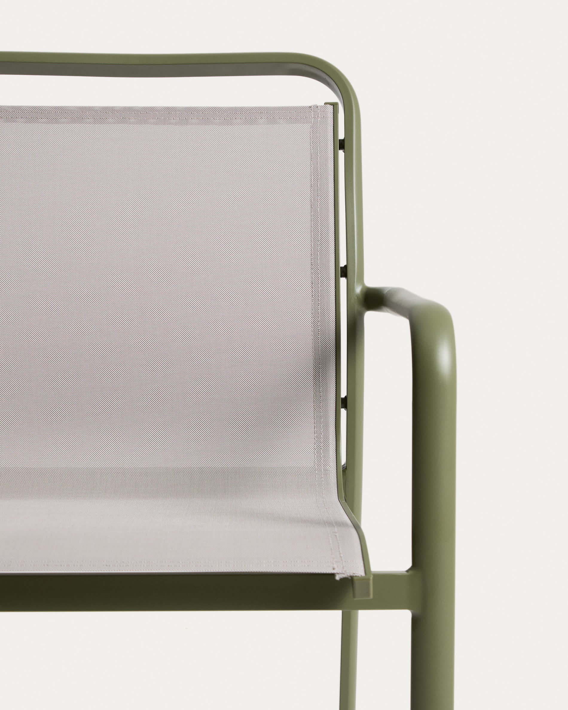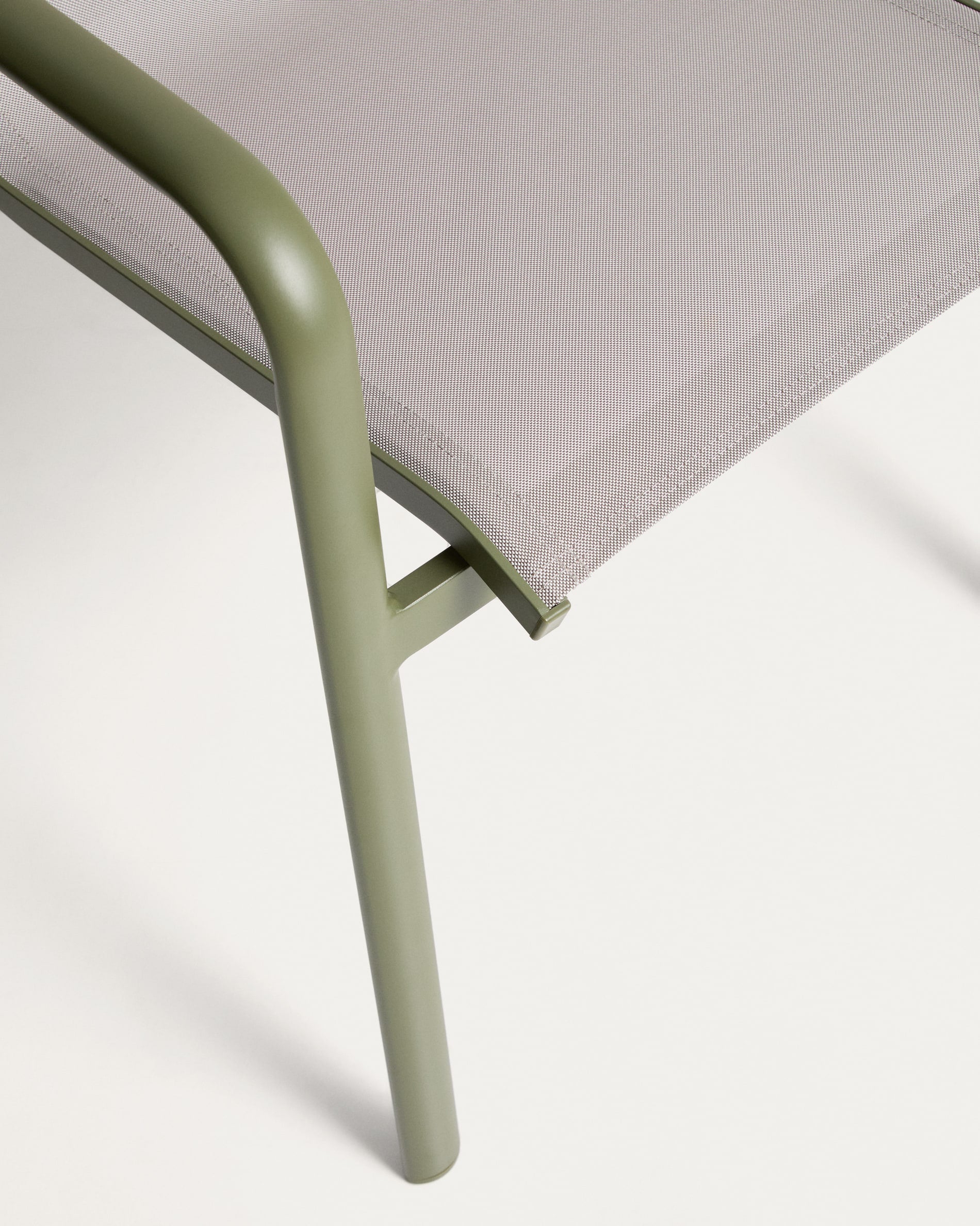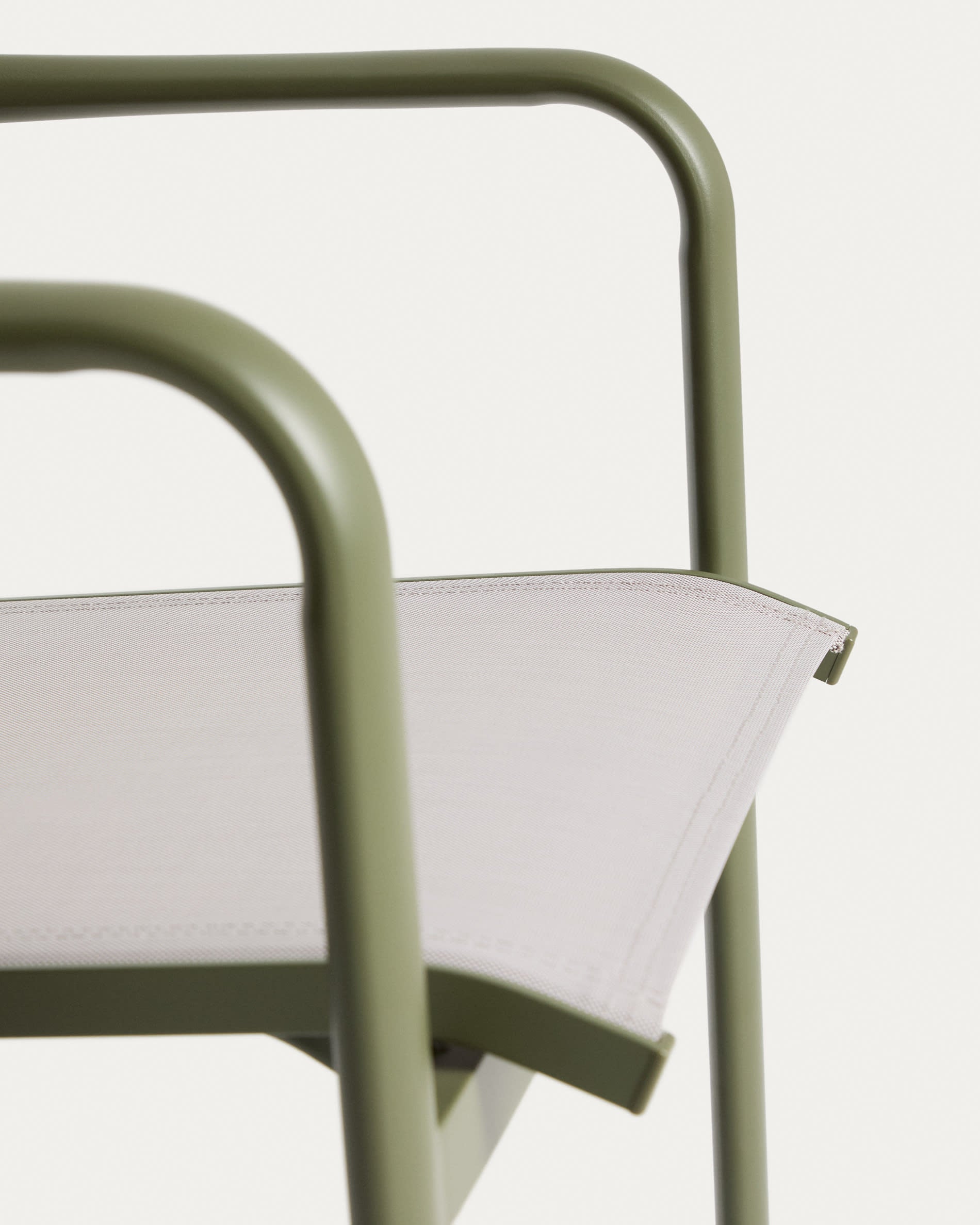 Stolička Luri je praktické a moderné riešenie na vnútorné aj vonkajšie použitie, ktoré spája pohodlie s vysokou trvácnosťou. Hliníková konštrukcia robí záhradnú stoličku ľahkou, a zároveň odolnou voči hrdzi, korózii a UV žiareniu, vďaka čomu je ideálna na terase, balkóne, v záhrade alebo v jedálni. Sedadlo a opierka vyrobené z odolnej tkaniny zabezpečujú pohodlie pri sedení, dobrú ventiláciu a zachovanie tvaru aj pri intenzívnom, každodennom používaní.