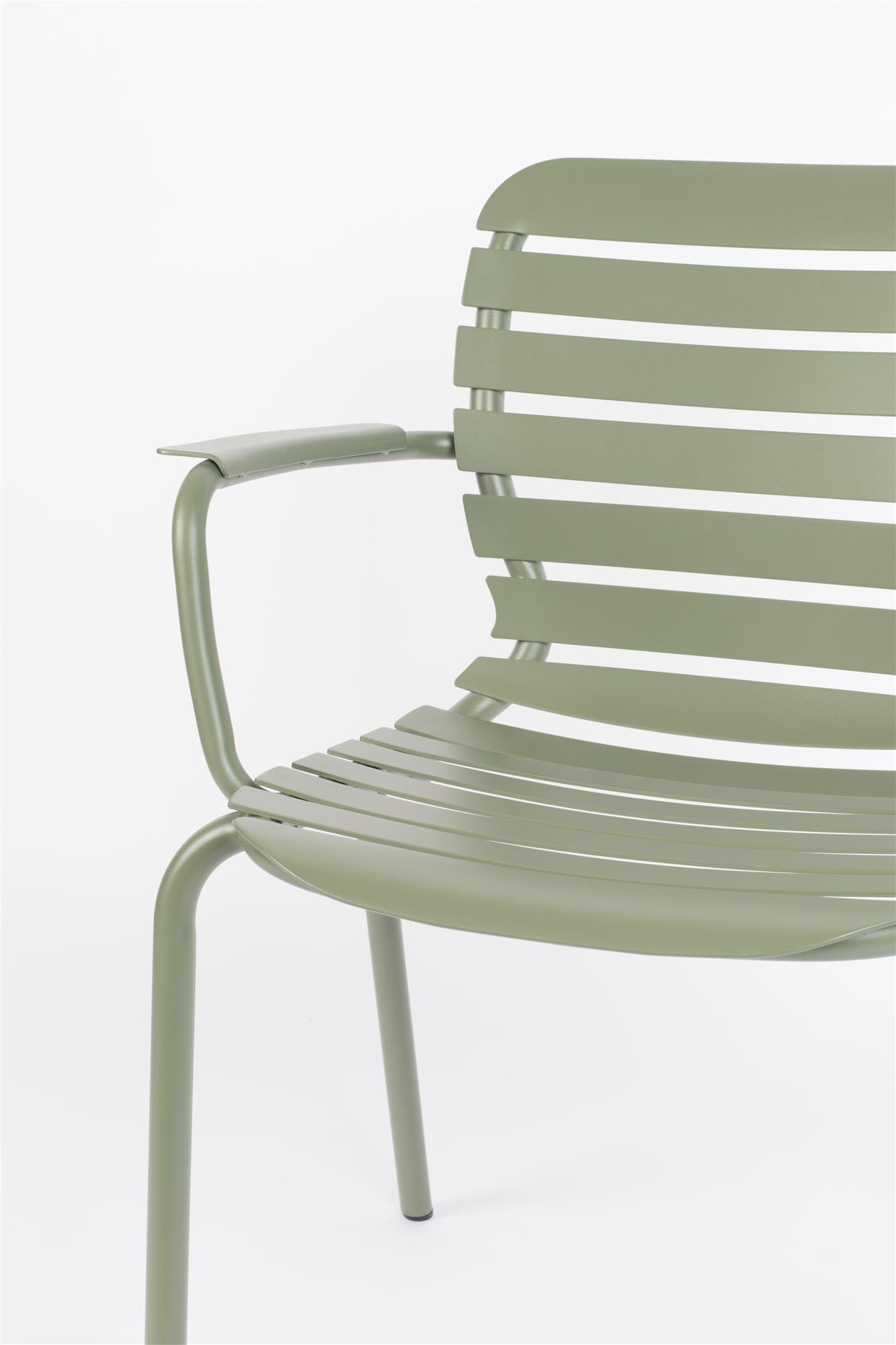 Záhradná stolička Vondel značky Zuiver je vynikajúcou voľbou pre tých, ktorí si cenia jednoduchý, nadčasový dizajn a kvalitné spracovanie. Navrhnutá v spolupráci so štúdiom APE, vyniká ľahkou, hliníkovou konštrukciou odolnou voči poveternostným podmienkam. Vďaka matnému povrchovému spracovaniu a integrovaným opierkam na ruky sa Vondel prezentuje štýlovo a harmonicky v každom priestore – od terasy po záhradu.