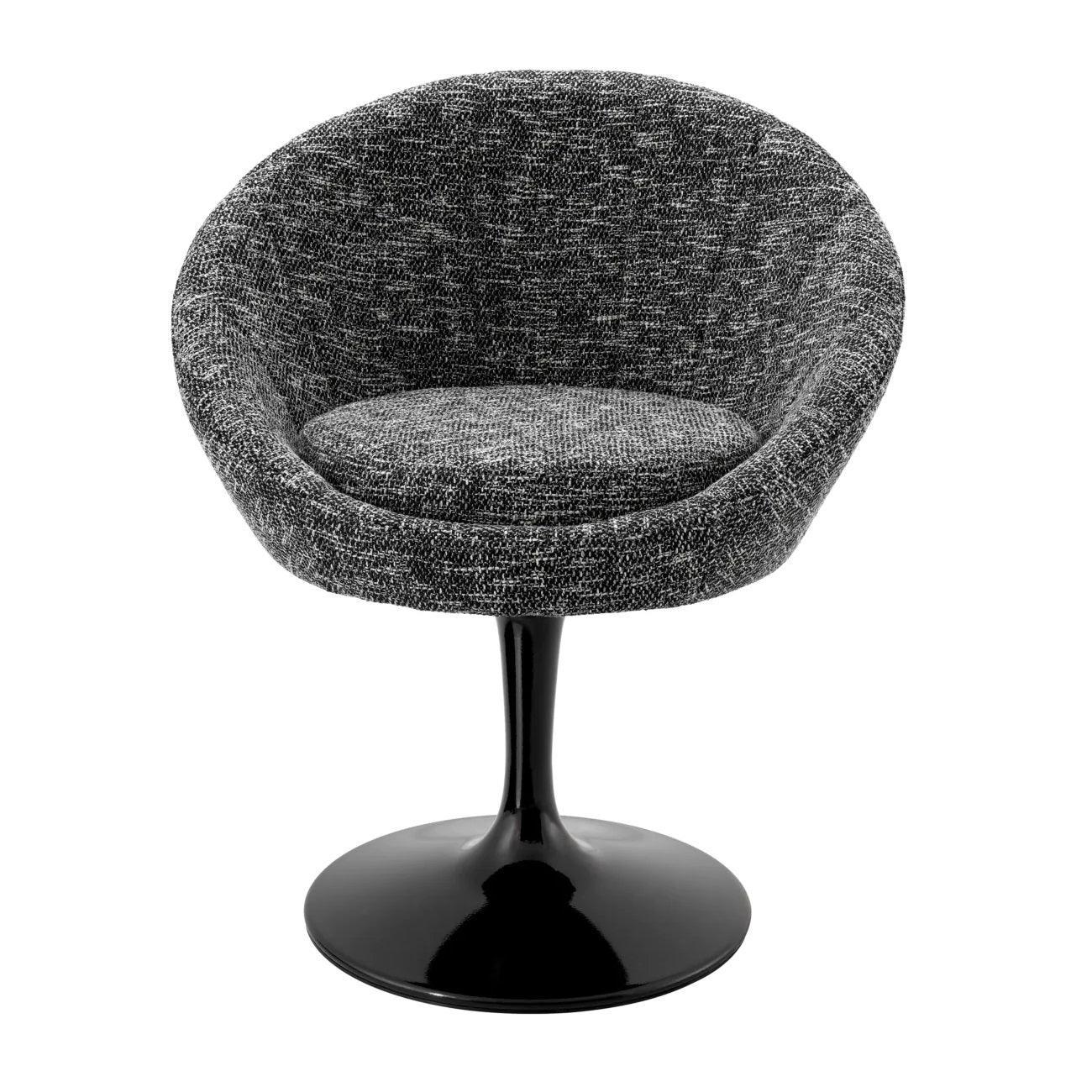 Podstavec v tvare zvonu je ako jazzová nota - nečakaná, prekvapujúca, ale dokonale zapadajúca do celku. Stolička vyžaruje retro atmosféru, ale zároveň je dostatočne univerzálna, aby sa skvele hodila k moderným interiérom. Ale to sedadlo tmavosivej stoličky je skutočným majstrovským dielom. Zaručuje nielen pohodlie, ale aj pocit, akoby ste sedeli v objatí priateľského ducha z minulosti, pripraveného pripomenúť vám zlaté časy popkultúry.