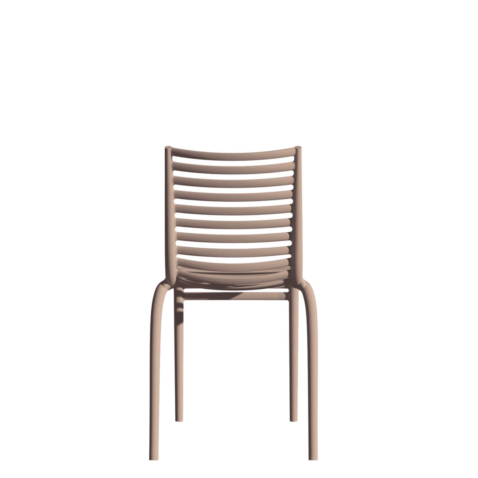 Jemne profilované línie podporujú prirodzené usporiadanie tela, čím zabezpečujú komfort pri sedení. Vďaka monolitickej forme z polypropylénu je stolička ľahká, odolná a výborne sa hodí ako do interiérov, tak aj do vonkajších priestorov.