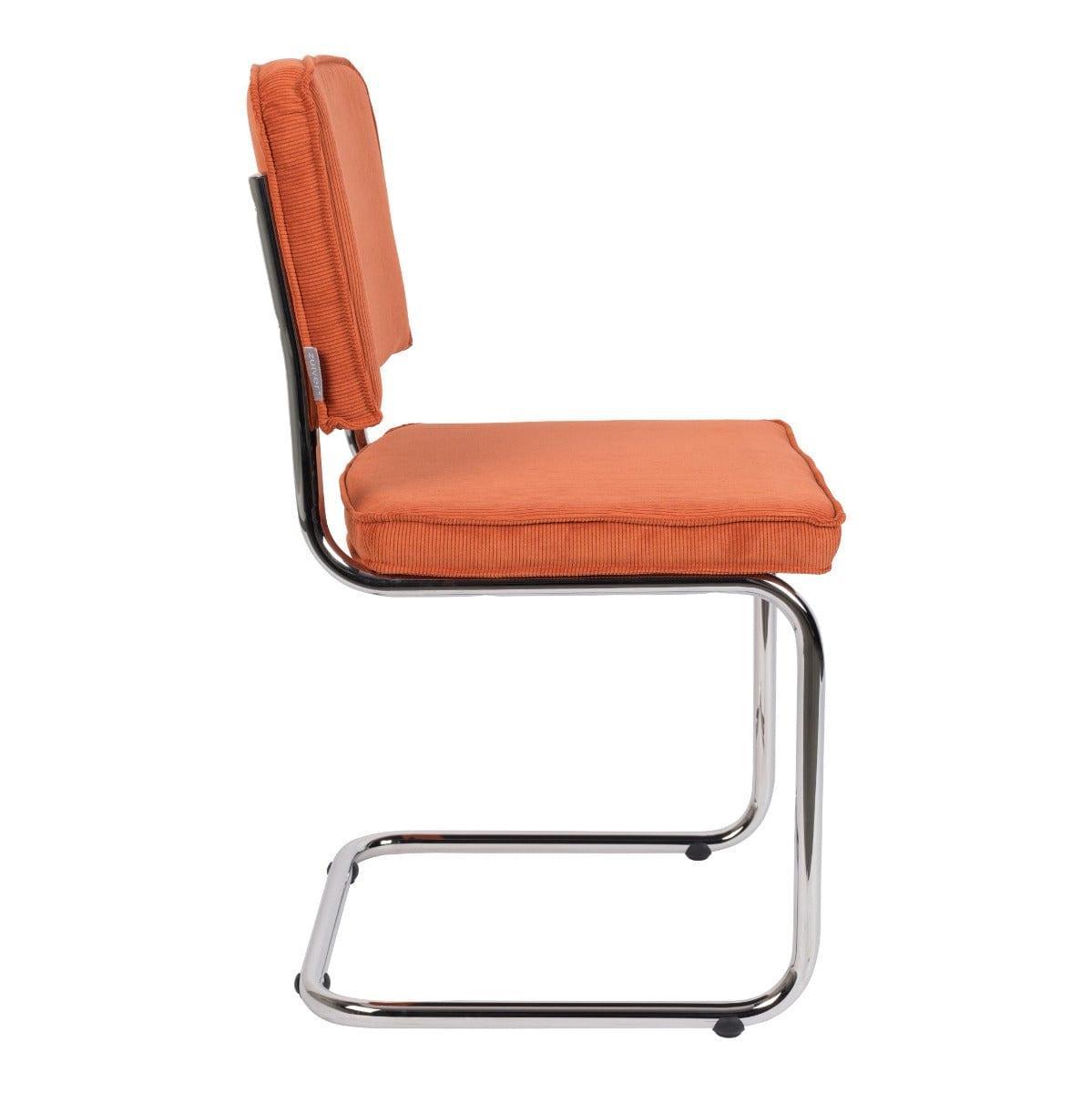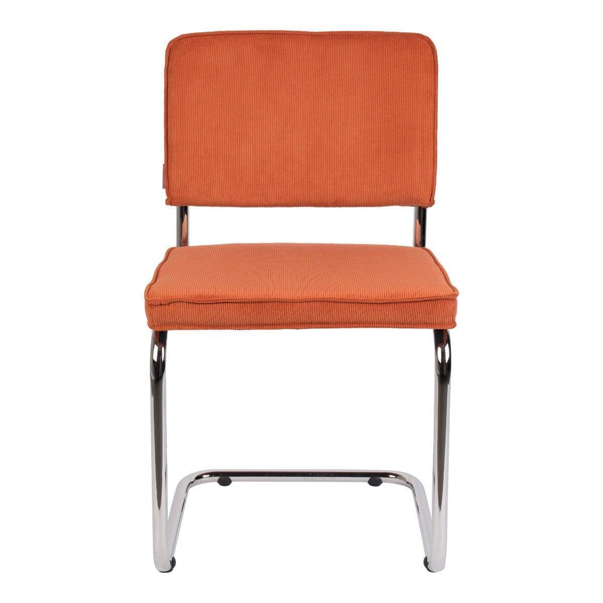 Ridge Rib je nadčasové stolička, ktorá vyniká neobvyklým rámom. Štruktúrované, oranžové vyhotovenie a základňa typu lyža z chrómovaného kovu vytvárajú úžasnú kombináciu vintage s moderným dizajnom.