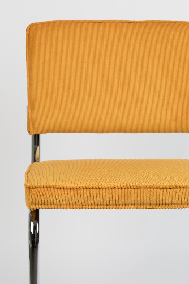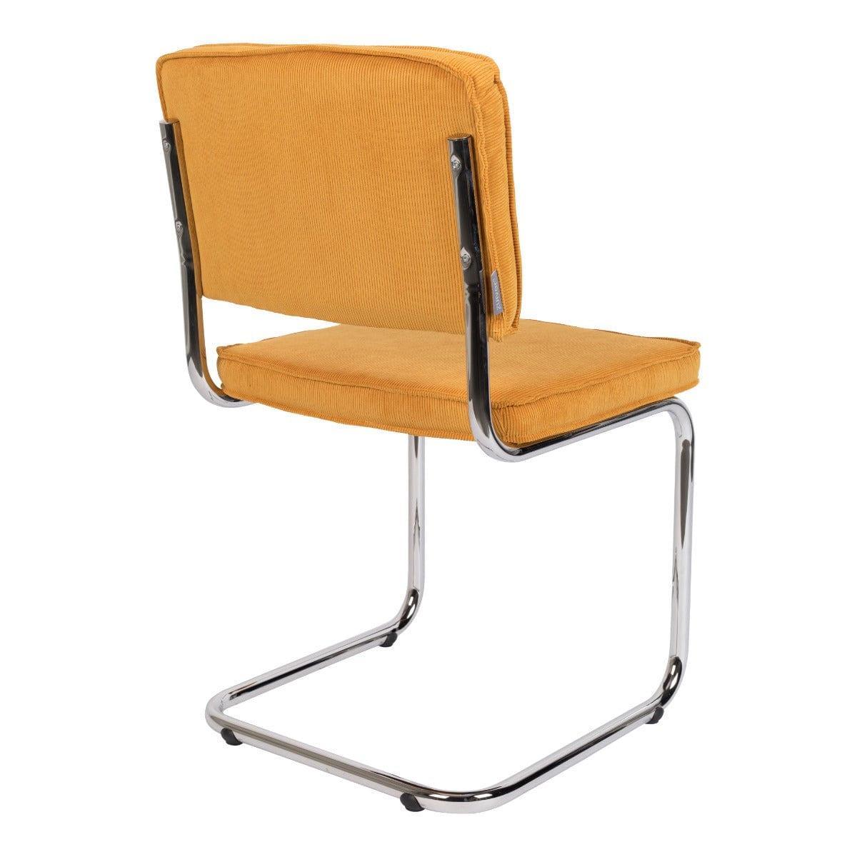 Ridge Rib je nadčasové stolička, ktorá vyniká netypickým rámom. Žlté zamatové vyhotovenie a základňa typu lyža z chrómovaného kovu vytvárajú úžasnú kombináciu vintage s moderným dizajnom.