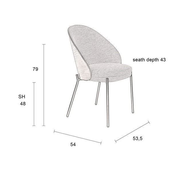 Materiał: tkanina 100% poliester, oparcie wykonane z forniru jesionowego, nogi metalowe malowane proszkowo.