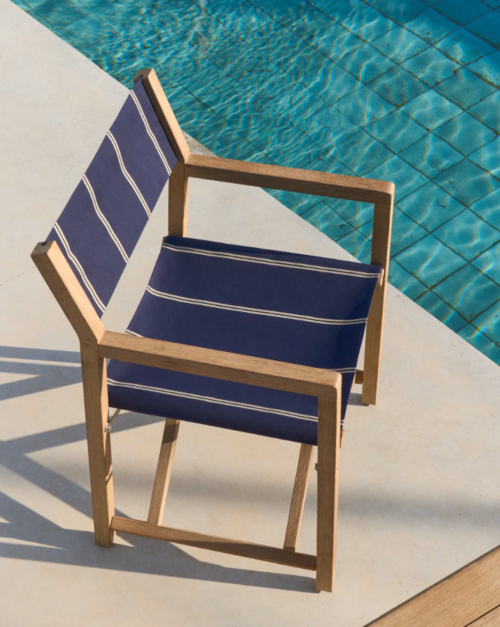 Skladacie vonkajšie kreslo VILARA modré s akáciovou základňou