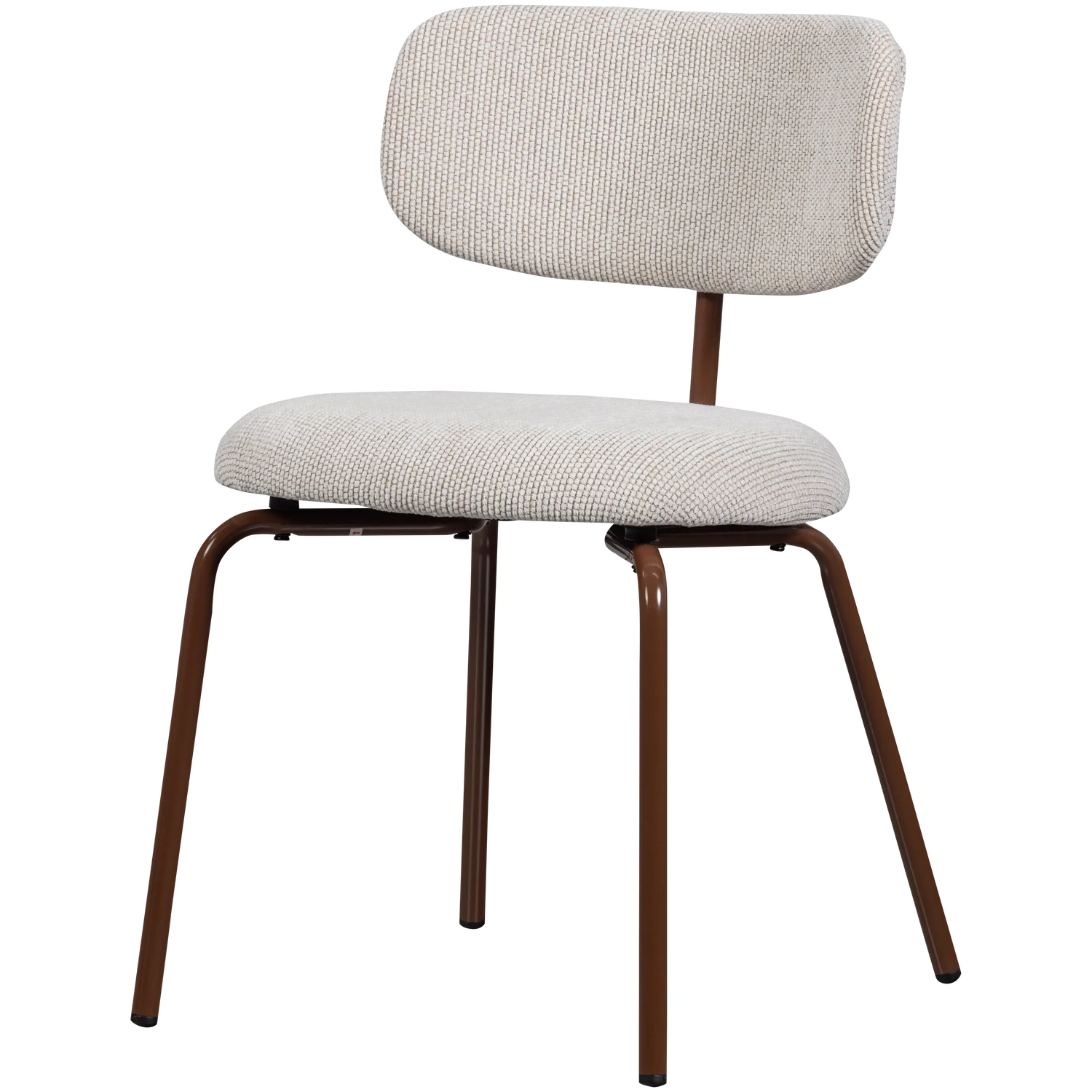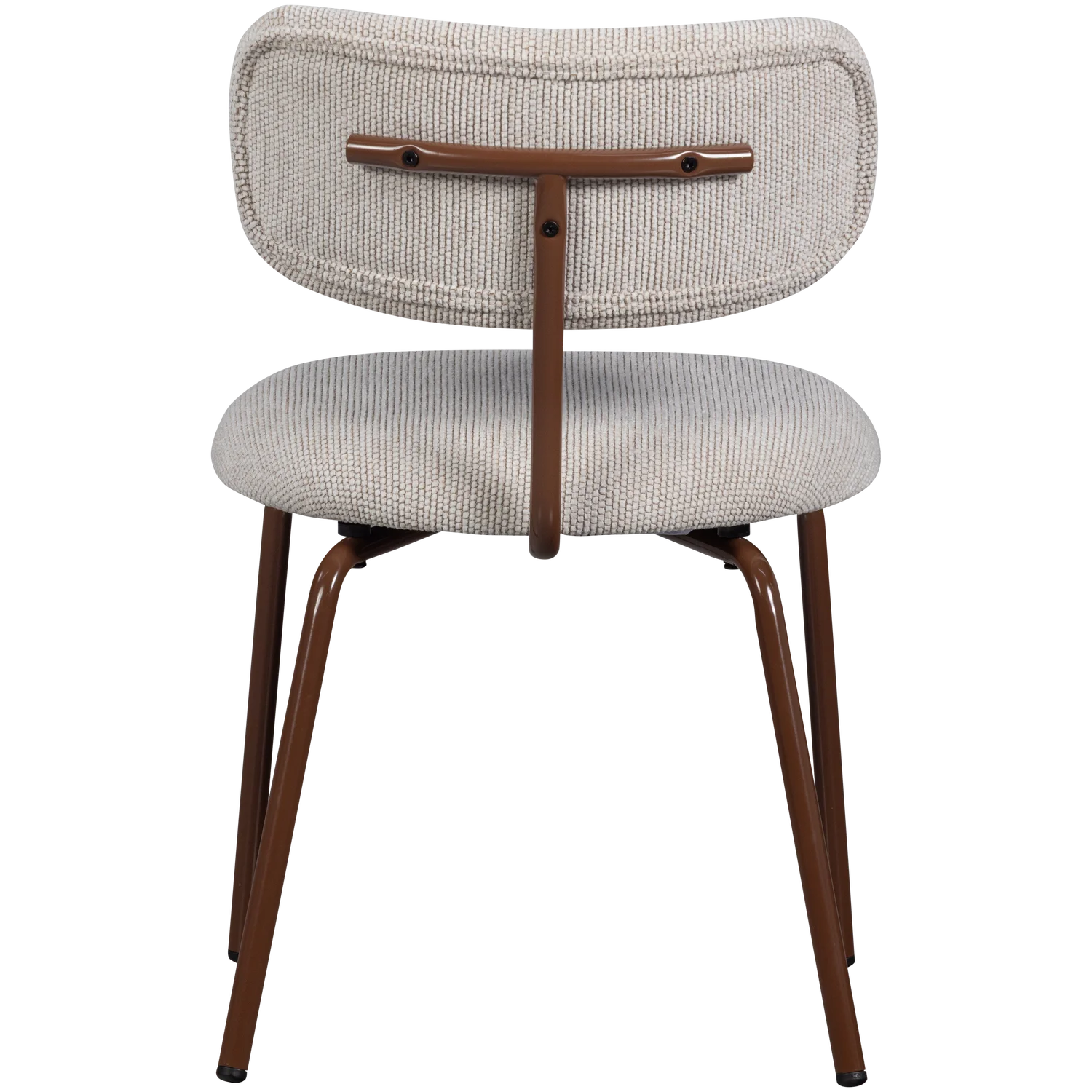 Jedálenská stolička Travis sa vyznačuje moderným, elegantným vzhľadom. Čalúnenie z tkaniny s výraznou väzbou mu dodáva útulný charakter, zatiaľ čo tmavý, štíhly kovový podstavec zdôrazňuje jeho ľahkosť a minimalistickú formu.