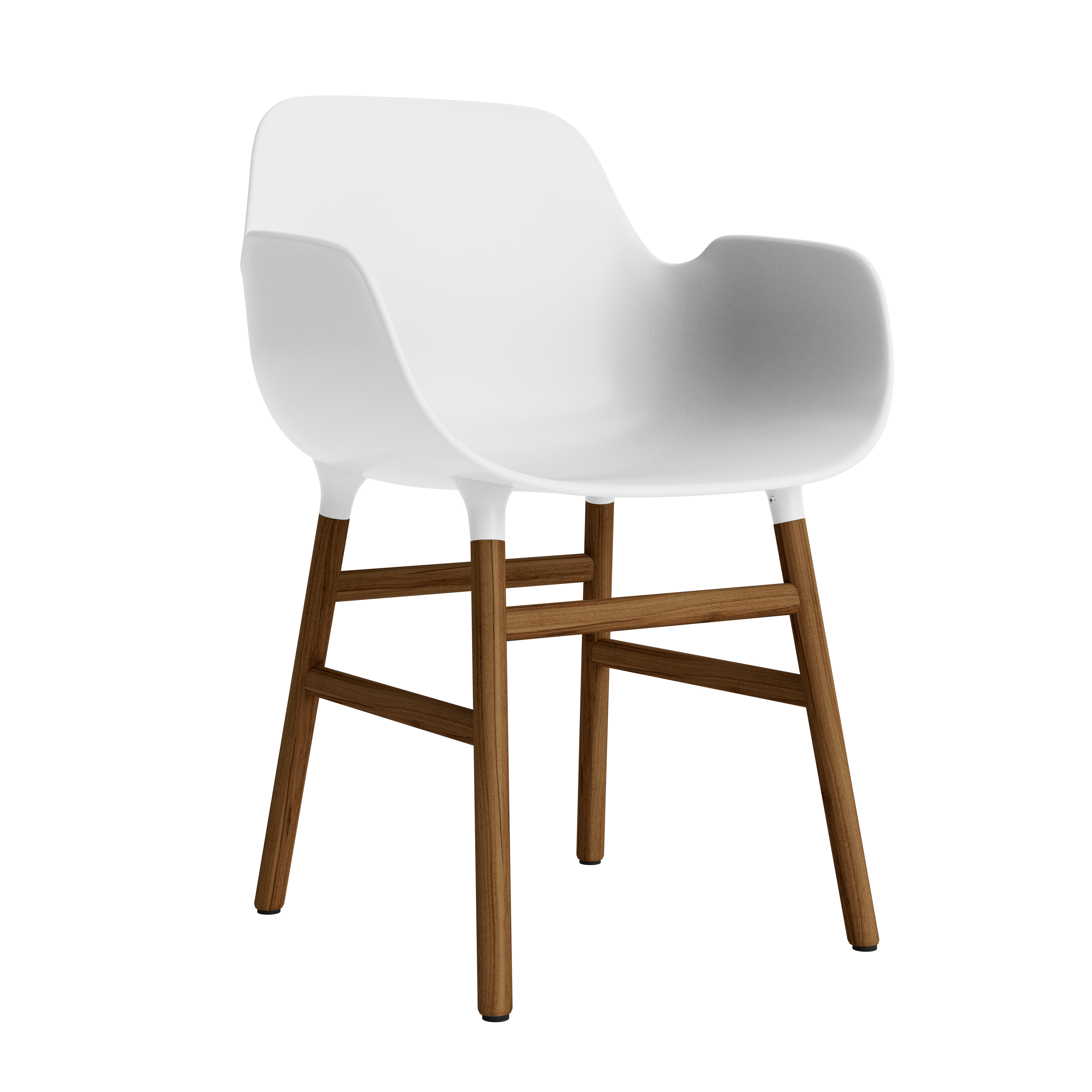 Kreslo s podrúčkami FORM biele s orechovým podstavcom