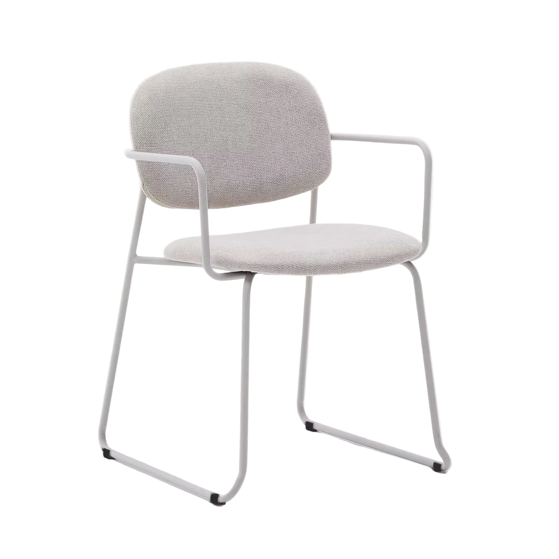 Kreslo s podrúčkami Meli je moderný návrh, ktorý spája mäkkú formu s výraznou, precízne spracovanou konštrukciou. Čalúnené operadlo a sedadlo dokončené tkaninou bouclé mu dodávajú útulnosť a elegantnú štruktúru, ktorá sa krásne prezentuje ako v jedálni, tak aj v obývacej izbe či kancelárskom priestore. Štíhle podrúčky a nohy z mikrotextúrovaného kovu v jemnom béžovom odtieni zdôrazňujú súčasný charakter, vďaka čomu toto jedálenské kreslo dokonale zapadá do minimalistických, moderných a soft loft aranžmánov.