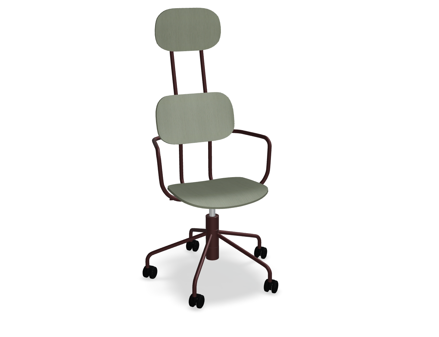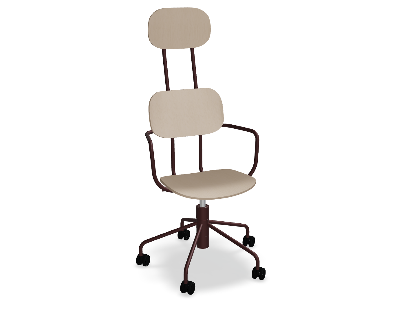 Pracovná stolička s opierkou hlavy New School s nastaviteľnou výškou poskytuje pohodlnú oporu pre celé chrbát používateľa. Vybavená piestom a kolieskami, umožňuje plnú slobodu pohybu, čo z nej robí ideálnu voľbu do kancelárií a vzdelávacích zariadení. Odolné sedadlo a opierka zo preglejky sú ľahko udržiavateľné, takže sa osvedčia na miestach s intenzívnym používaním.