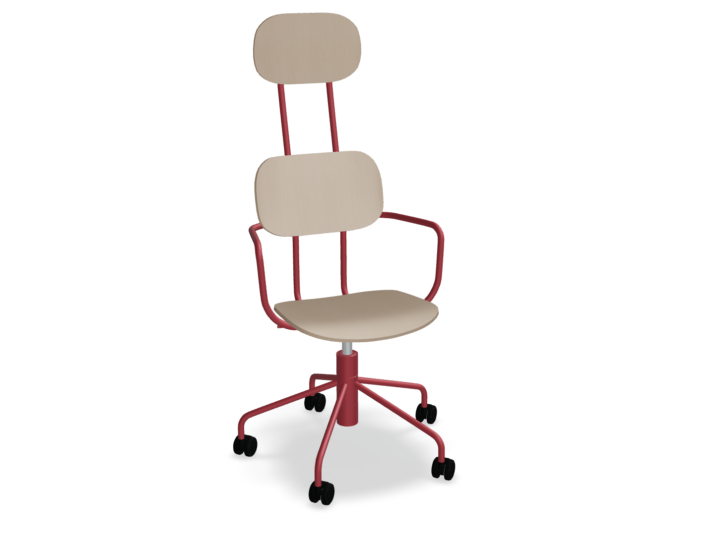 Pracovná stolička s opierkou hlavy New School s nastaviteľnou výškou poskytuje pohodlnú oporu pre celé chrbát používateľa. Vybavená piestom a kolieskami, umožňuje plnú slobodu pohybu, čo z nej robí ideálnu voľbu do kancelárií a vzdelávacích zariadení. Odolné sedadlo a opierka zo preglejky sú ľahko udržiavateľné, takže sa osvedčia na miestach s intenzívnym používaním.