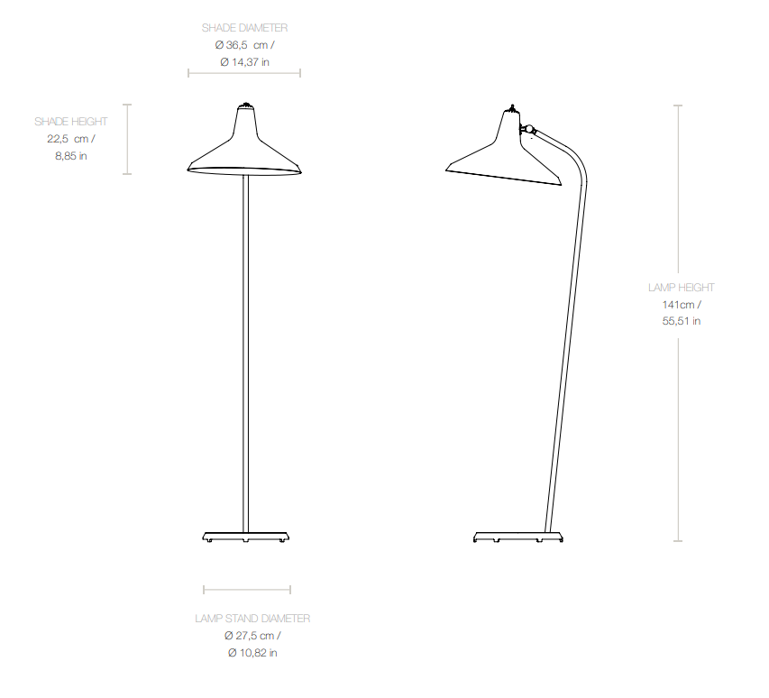 Stojaca lampa G-10 je nadčasový projekt Grety M. Grossman z roku 1950, ktorý spája industriálny charakter s rafinovanou eleganciou. Charakteristický tienidlo s matnou textúrou, povrchová úprava z lešteného mosadze a štíhla silueta dodávajú lampa výnimočný štýl, vďaka čomu sa skvele hodí do klasických aj moderných interiérov.
