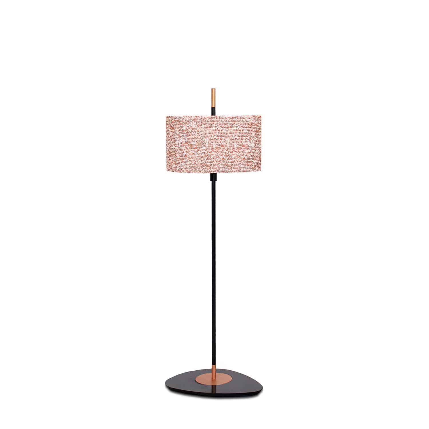 Podlahová lampa Lagoon môže byť nielen zdrojom svetla, ale aj ozdobou. Lagoon je osvetlenie, ktoré spája jednoduchú formu s metalickou nohou v čiernej a medenej farbe a farebným tienidlom s abstraktnými vzormi.