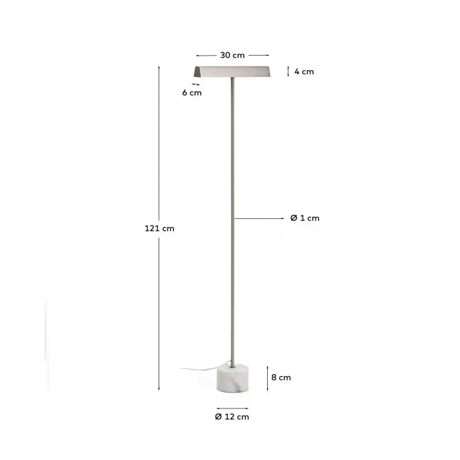 Stojaca lampa Lynor je výnimočná kombinácia jednoduchosti a charakteru, ktorá sa dokonale hodí do moderných, elegantných interiérov. Jej konštrukcia z brúseného kovu harmonicky ladí s mramorovým podstavcom, ktorý dodáva stabilitu a jedinečnosť vďaka neopakovateľným vzorom kameňa. Taká dekoratívna stojaca lampa nielenže osvetlí priestor, ale tiež sa stane jeho štýlovým akcentom.