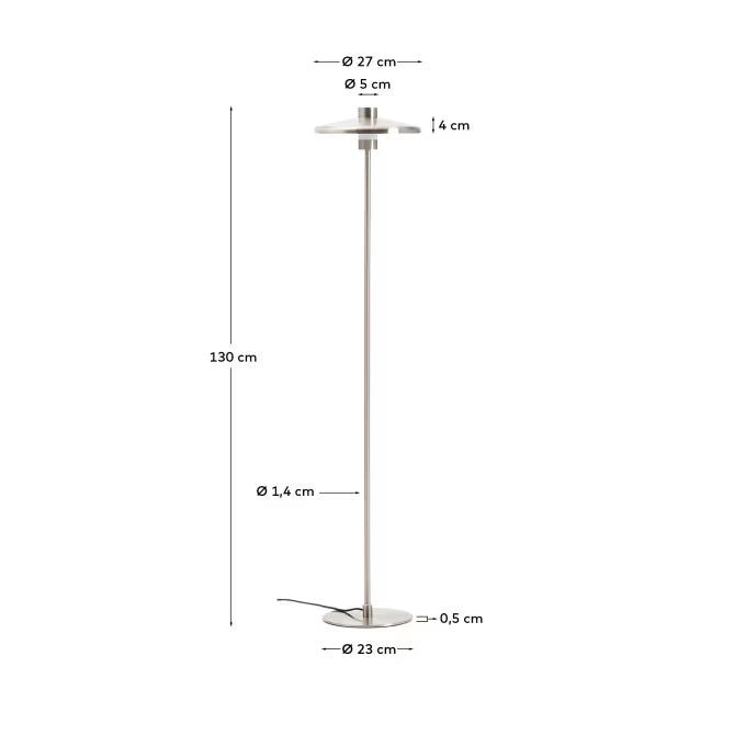 Stojaca lampa Nuvira je dizajnový akcent, ktorý do interiéru prináša jemnú eleganciu a nadčasový štýl. Jej štíhla forma z brúseného ocele s povrchovou úpravou proti odtlačkom prstov očarí moderným charakterom, a zároveň je ľahko udržiavateľná. Geometrický tienidlo inšpirované vintage štýlom pridáva rafinované čaro, vďaka čomu lampa Nuvira sa stane výnimočnou ozdobou obývačky, spálne alebo čítacieho kútika.