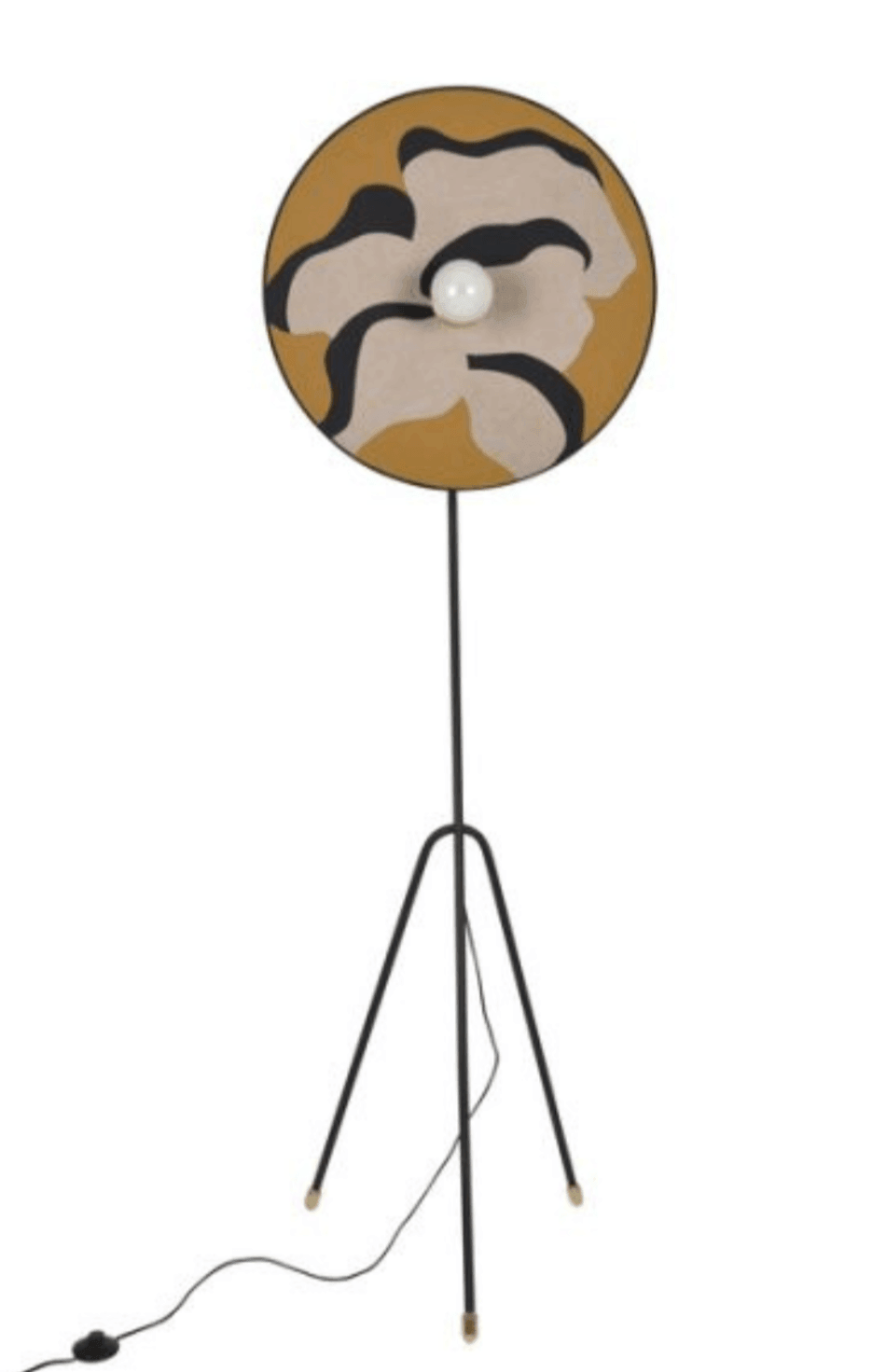 Stojaca lampa Soni Laudet v horčicovej farbe sa prezentuje ako elegantný prvok vyrobený z natieraného kovu s pieskovaným povrchom a jemne dokončenými mosadznými detailmi. Jej tvar statívu je nastaviteľný, čo umožňuje prispôsobiť ju individuálnym preferenciám.