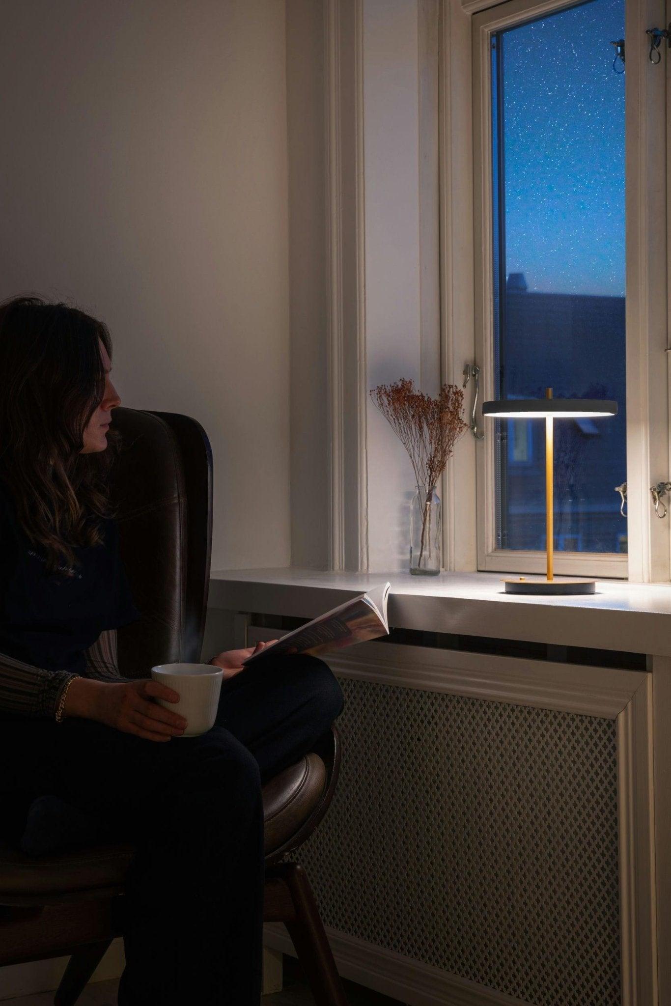 Asteria Move to prenosná stolná lampa, ktorá nepotrebuje žiadne káble, čo jej dodáva charakter a umožňuje ľahko presúvať svetlo tam, kde je potrebné.