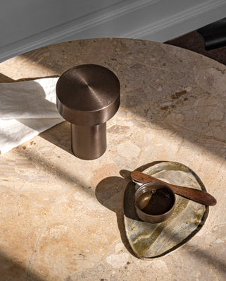 Lampa Column je spojenie modernej technológie a atmosférického dizajnu v kompaktnom, sochárskom tvare. Jej silueta je inšpirovaná tvarom morských polerov, čo jej dodáva jedinečný charakter. Vďaka batériovému napájaniu ponúka úplnú slobodu používania – môžete ju ľahko prenášať a využívať ako doma, tak na terase či v záhrade.