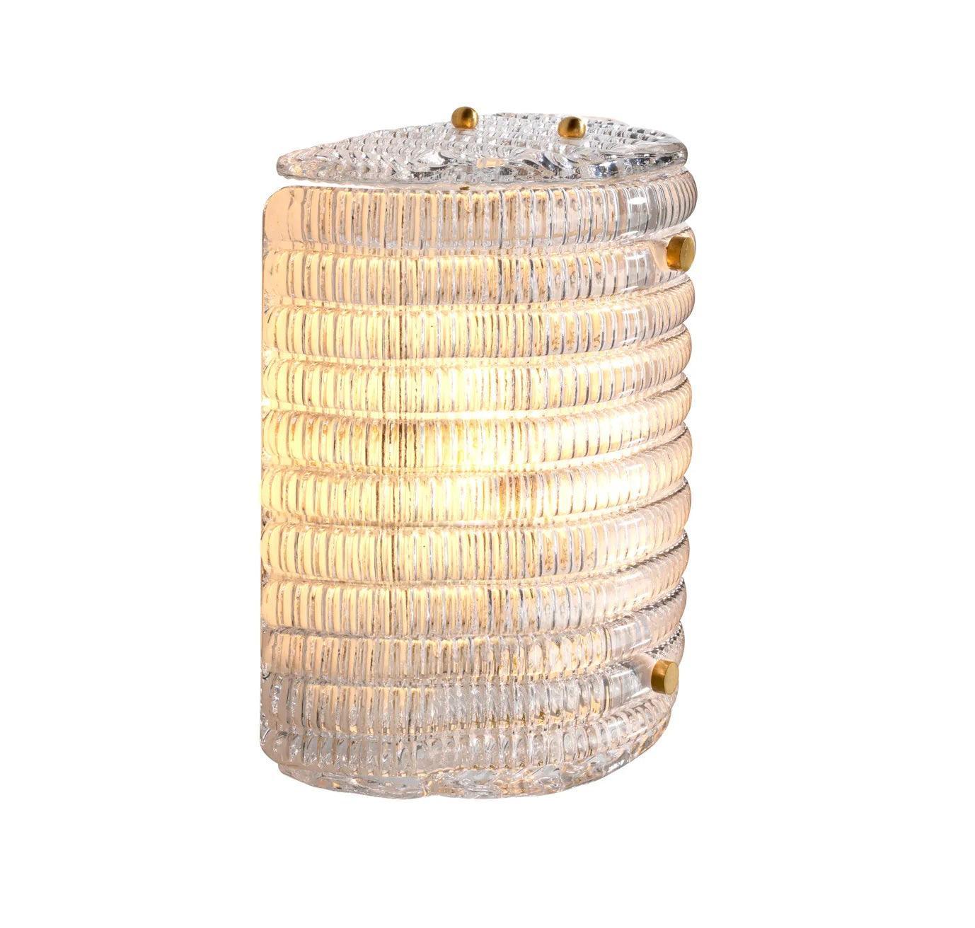 Polo-kruhový tienidlo zo skla je nielen praktické, ale aj estetické. Keď je lampa rozsvietená, sklo rozptyľuje svetlo jemným spôsobom, vytvárajúc teplú a príjemnú atmosféru. Je to ideálne osvetlenie na relaxáciu a oddych.