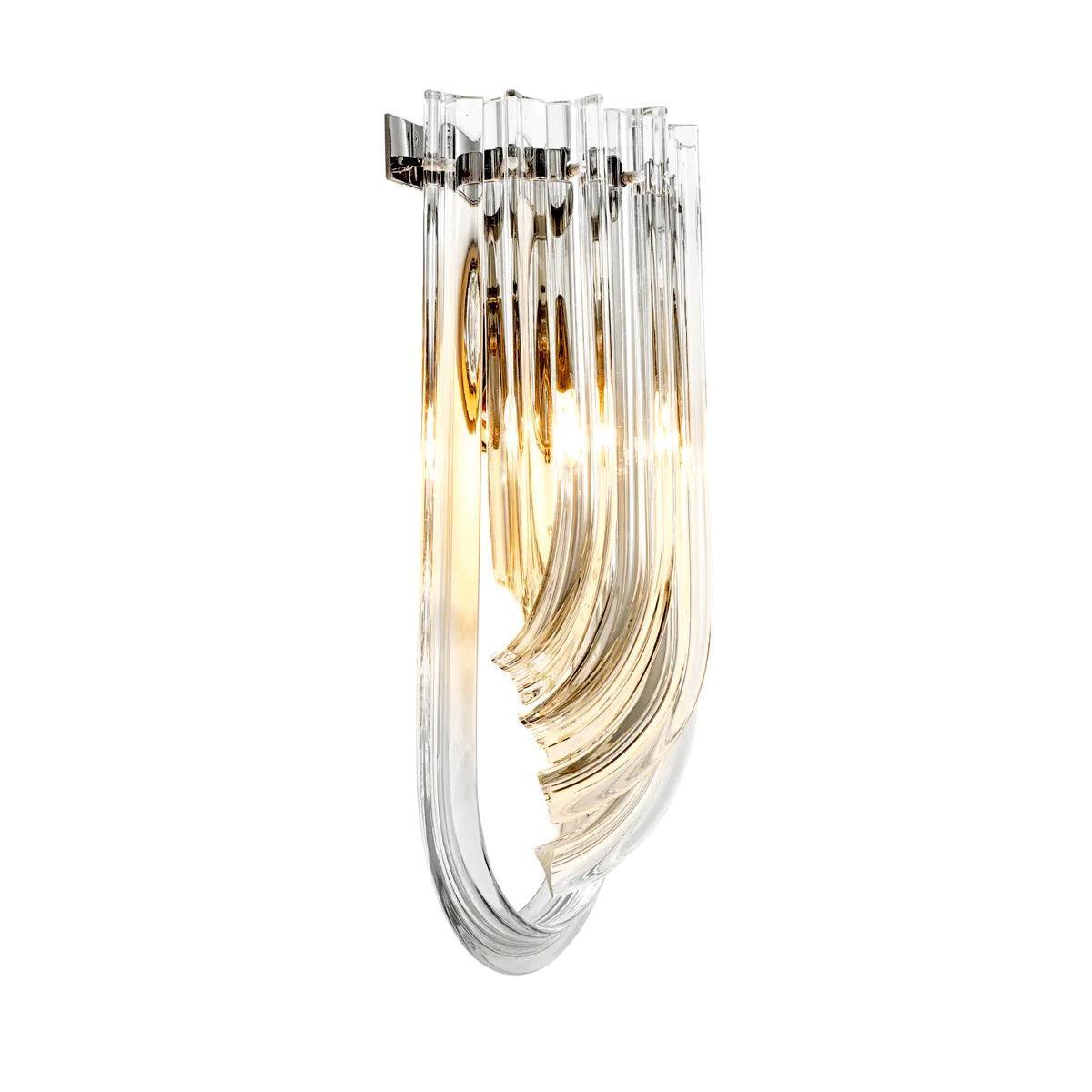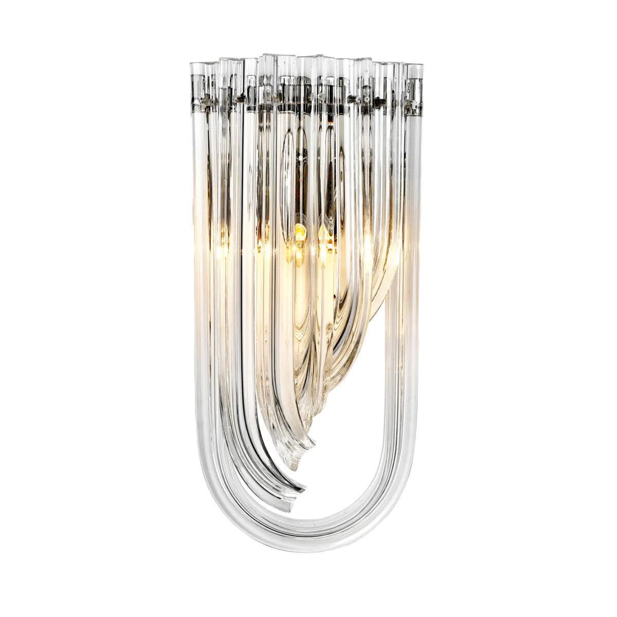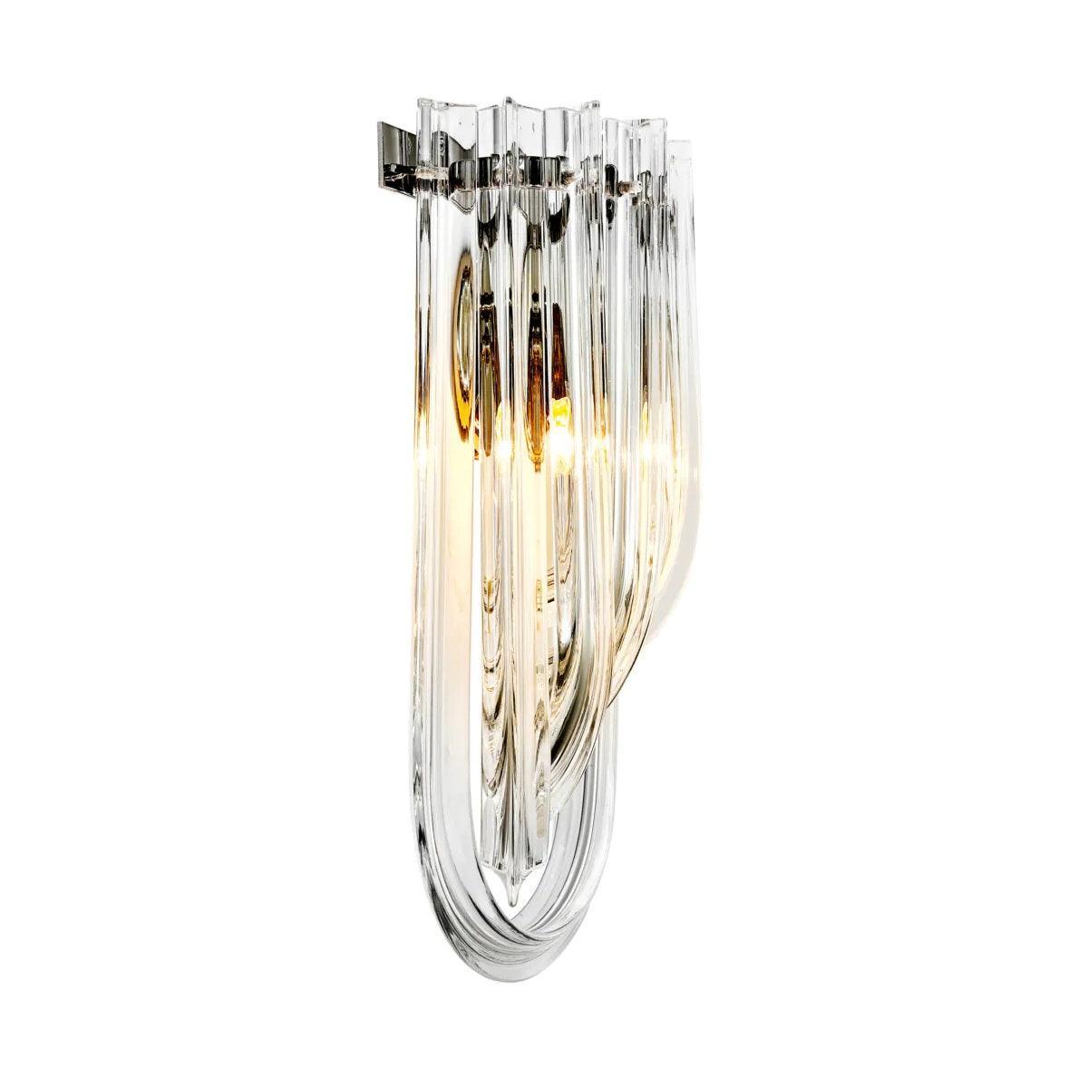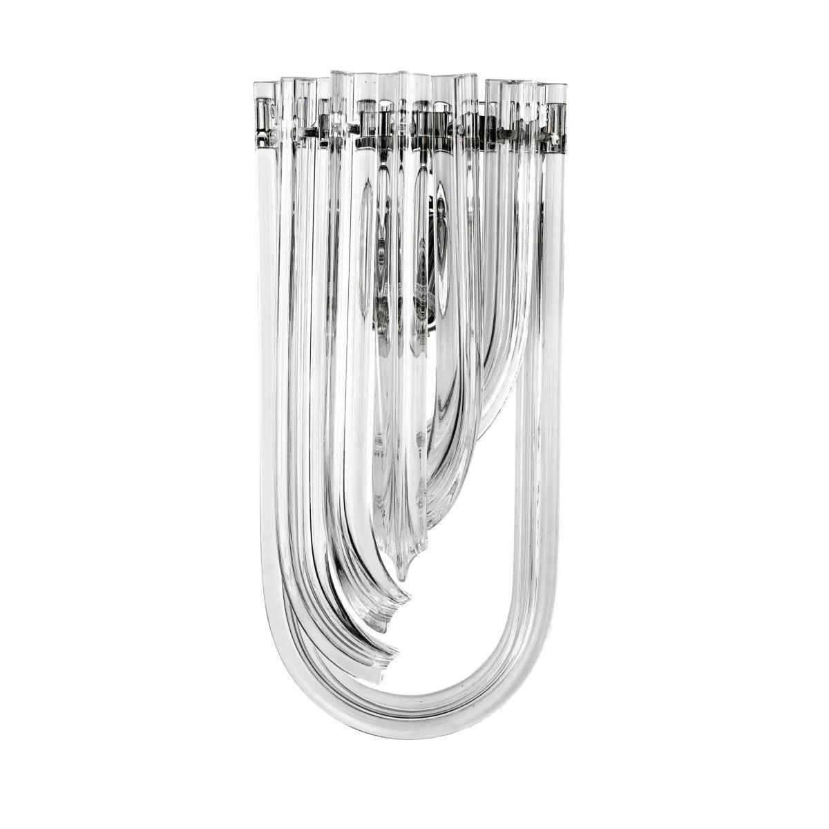 Nástenná lampa Greco je elegantný doplnok, ktorý prinesie lesk a rafinovaný štýl Art Deco do vášho interiéru. Vyrobená z kvalitného niklovaného kovu, tento luxusný nástenný svietidlo sa vyznačuje mimoriadnym dizajnom. Strieborná lampa Greco pozostáva z radu dlhých, vyrezávaných kvapiek z priehľadného skla, ktoré krásne odrážajú svetlo a vytvárajú efektné osvetlenie. Jeho neobyčajné prevedenie robí z neho mimoriadne pôsobivý dekoratívny prvok, ktorý dodáva priestoru výnimočný charakter.