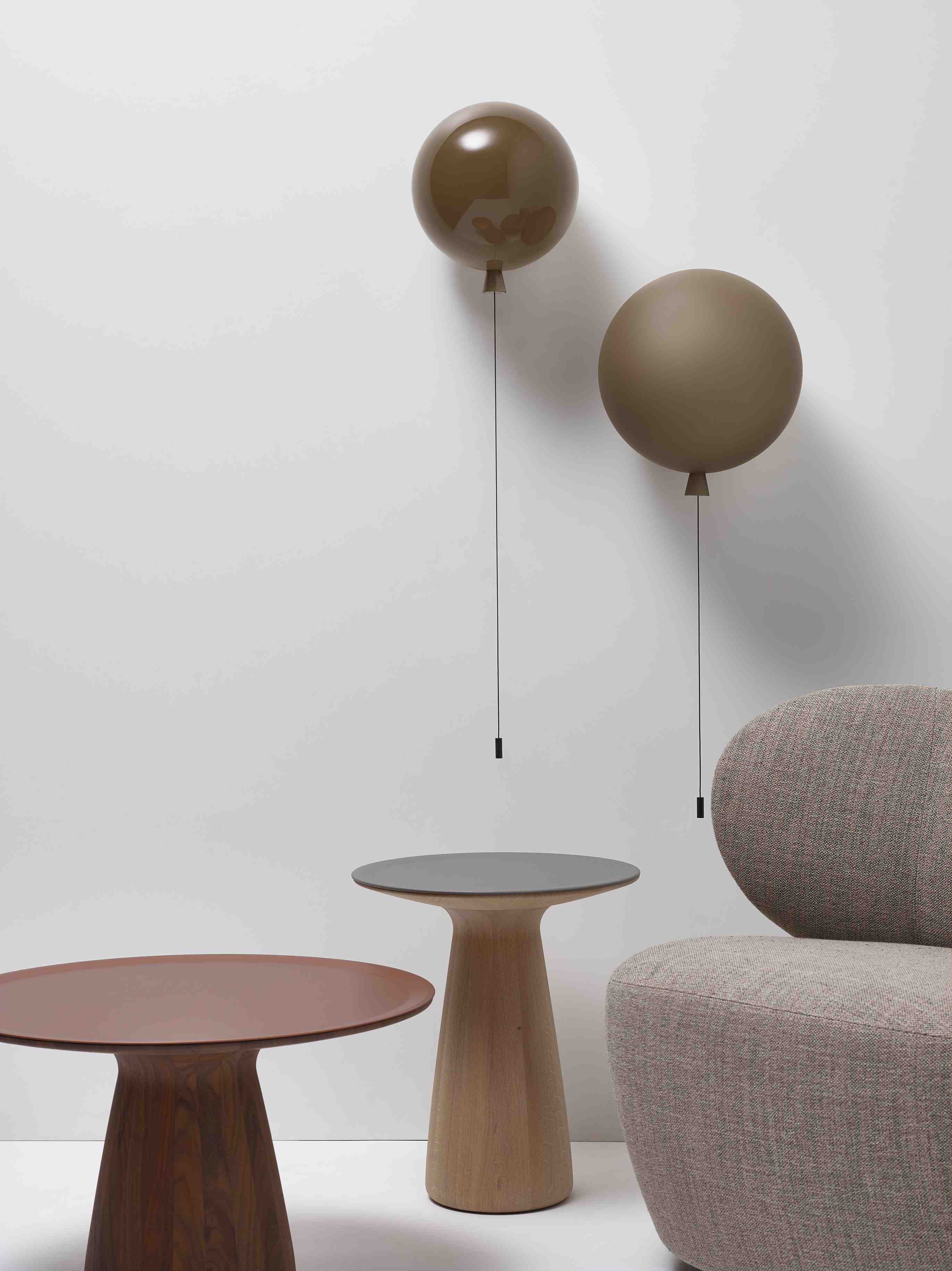 Stenná lampa z kolekcie Memory, inšpirovaná bezstarostným detstvom, je dostupná v troch veľkostiach a ponúka možnosť personalizácie prostredníctvom rôznych farieb a povrchových úprav. Každá lampa je štýlovo navrhnutá ako nafúknutý balón, s charakteristickým šnúrkom na zapínanie svetla, čo pridáva šarm každej aranžácii.