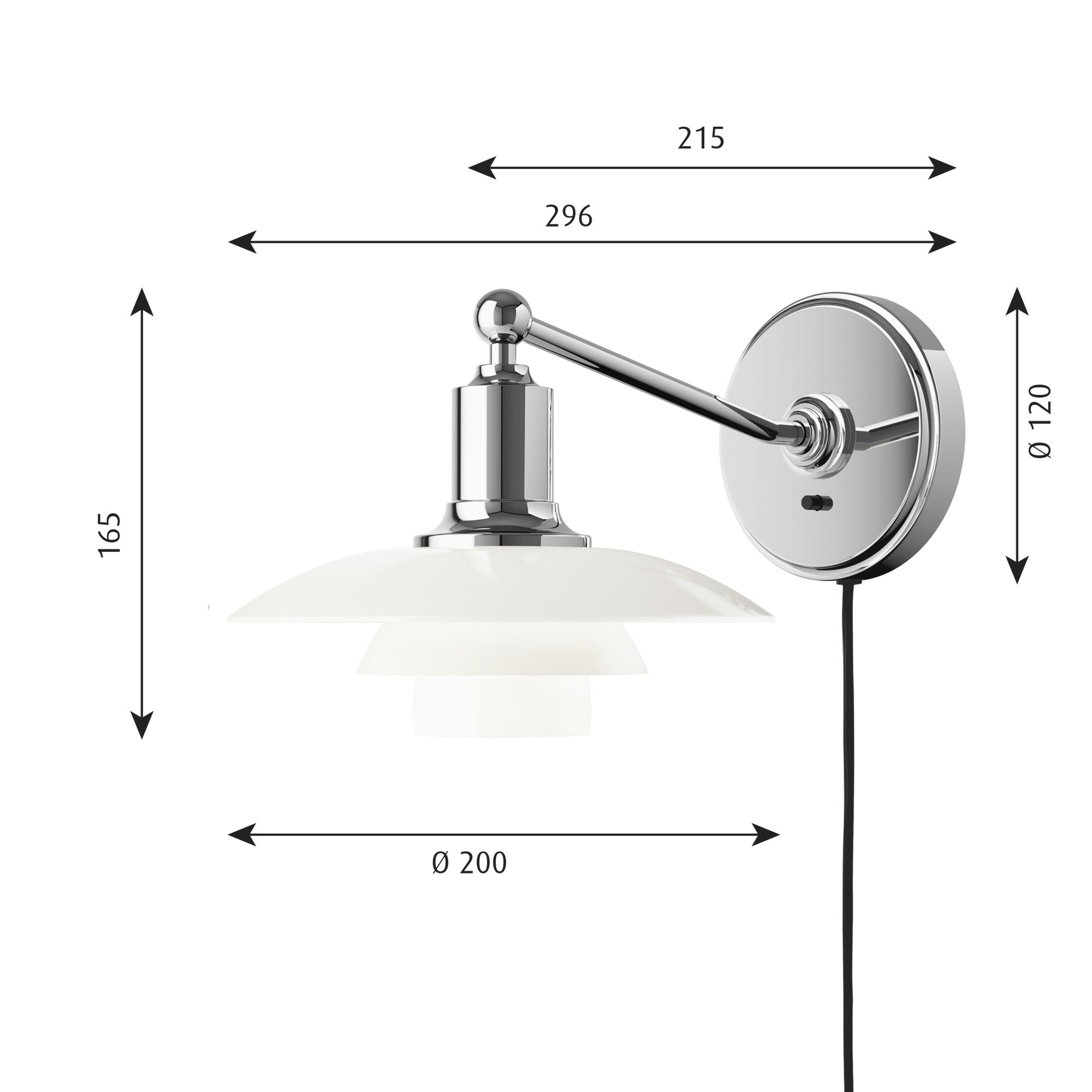 Nástenná lampa PH 2/1 biela s chrómovým podstavcom