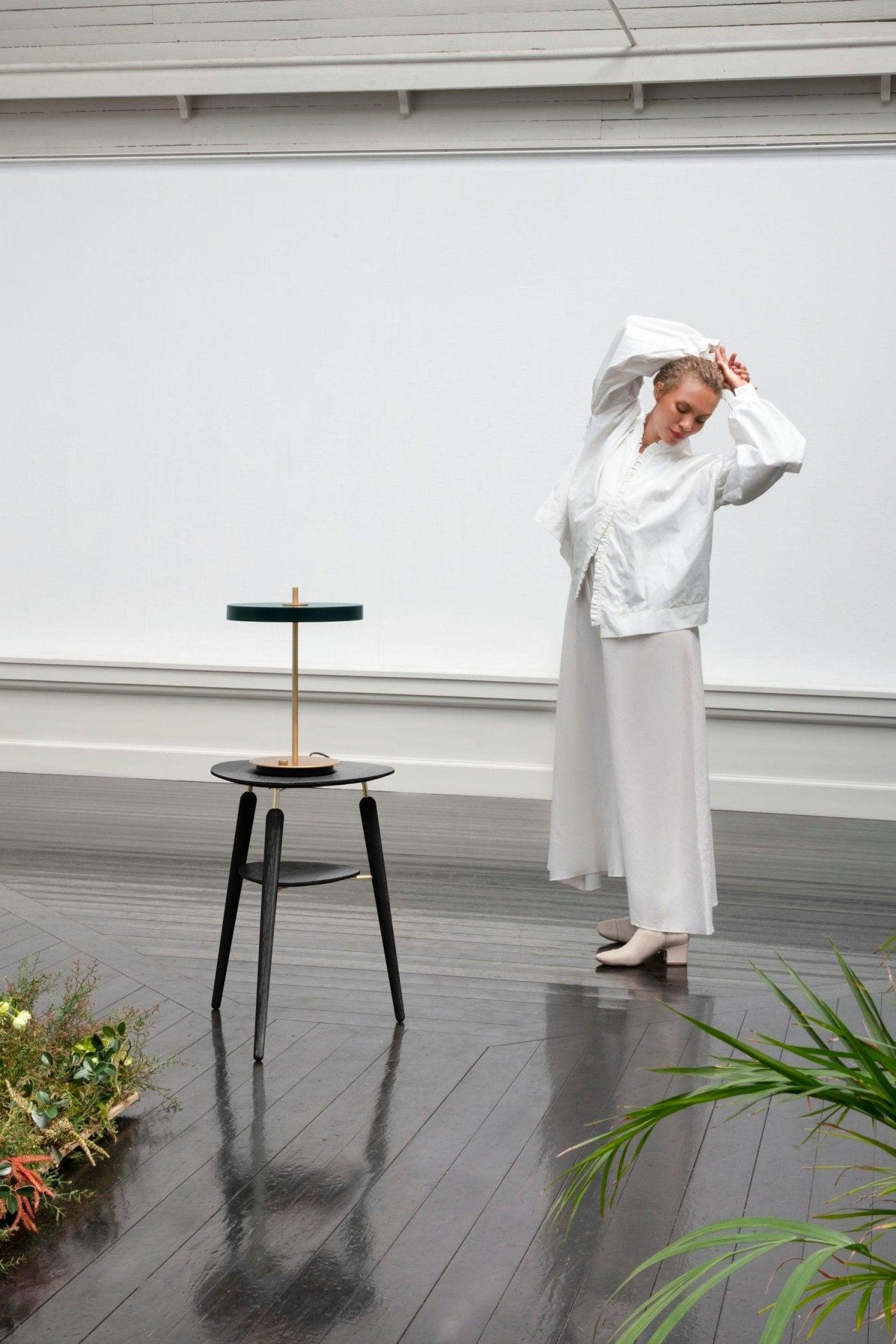 Stolná lampa Asteria Table je výnimočným prvkom interiéru, vybaveným vstavaným LED panelom s difuzérom, ktorý zabezpečuje jemné osvetlenie miestnosti. Mosadzný stĺp prechádzajúci lampou pridáva eleganciu a pevnosť celej konštrukcii, čím jej dodáva kompaktný vzhľad.