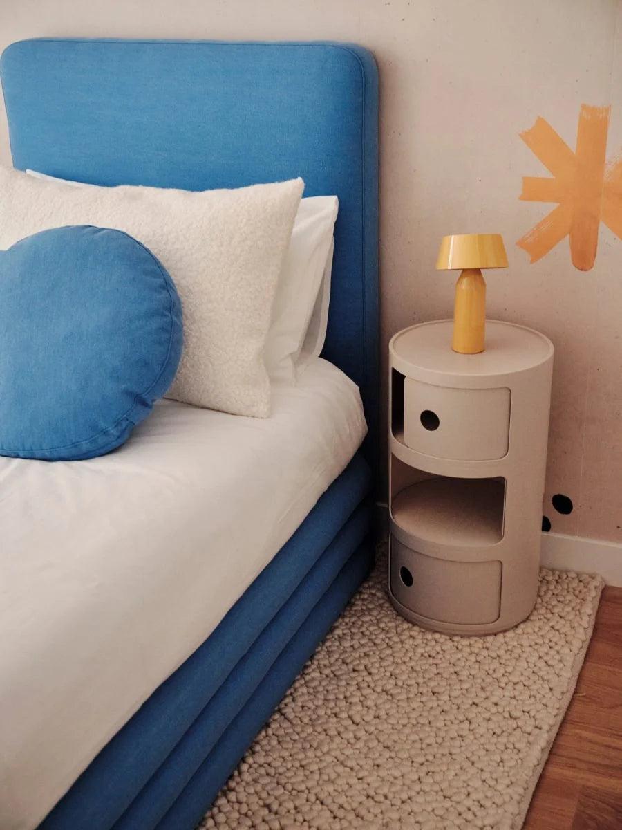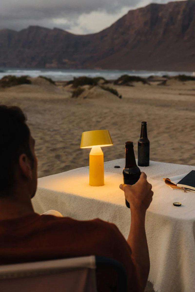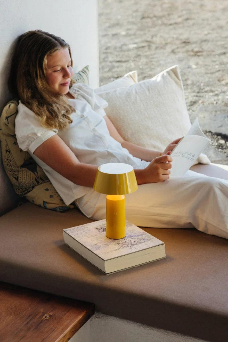 Vyrobený z polykarbonátu, dizajn spája základné geometrické tvary. Naklápací tienidlo umožňuje nasmerovanie svetla. Široká paleta farieb ponúka možnosť pre každý vkus a každú miestnosť. Bicoca je malá, praktická, všestranná a autonómna.