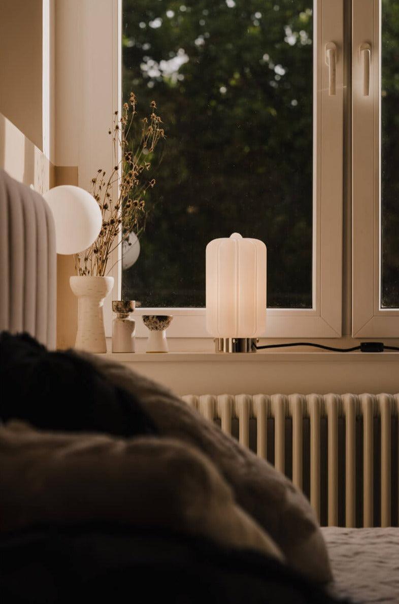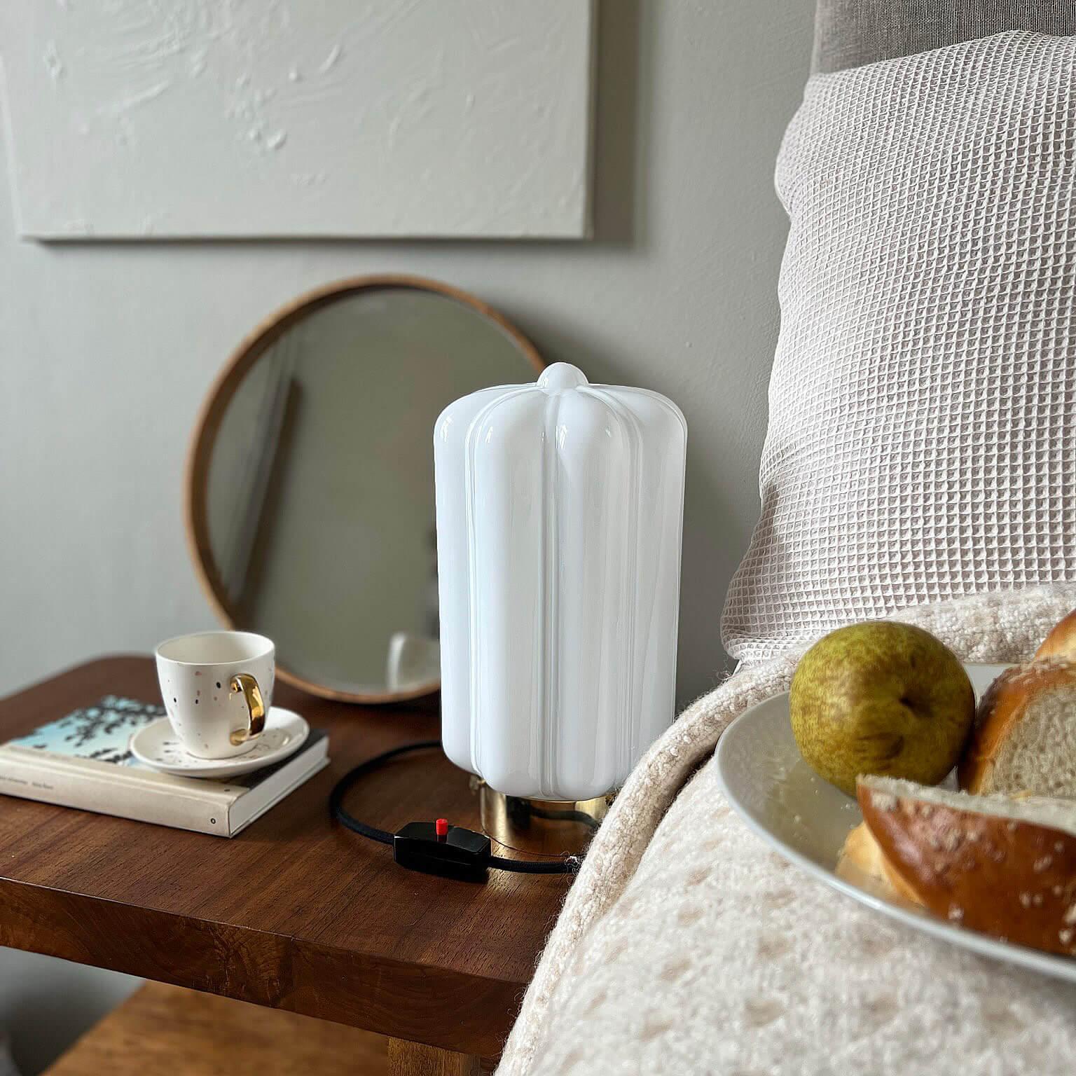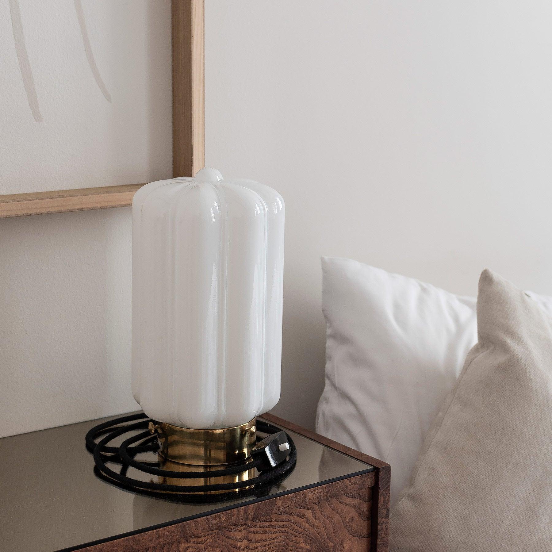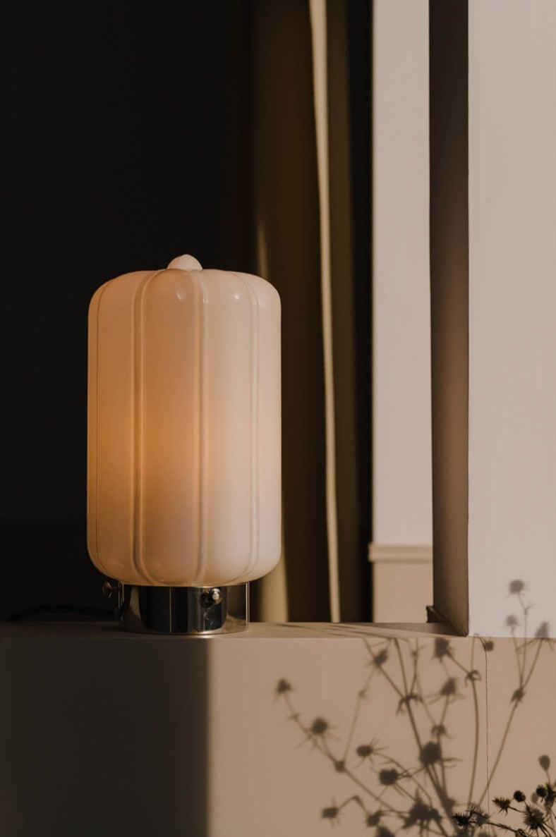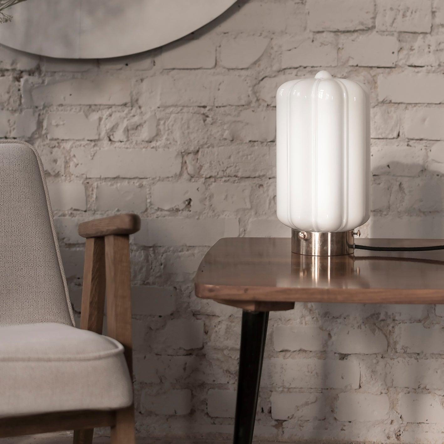 Stojaca lampa Deco je výnimočným príkladom harmónie medzi jemnosťou a geometrickou disciplínou. Jej subtílny tienidlo, ručne fúkané miestnymi remeselníkmi, očarí nielen svojím vzhľadom, ale predovšetkým vytvára mimoriadne mäkké a atmosférické svetlo, ktoré sa rozlieva po miestnosti a dodáva jej jedinečné čaro.