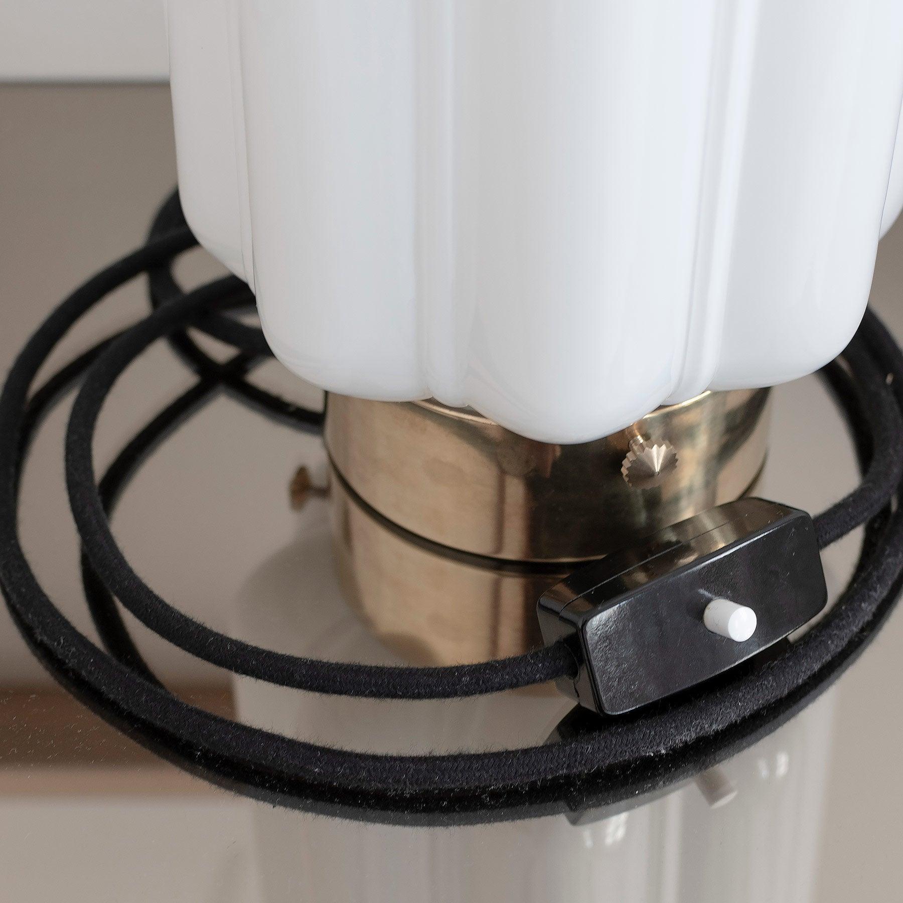 Základňa lampy je vyrobená z prírodného, masívneho mosadze, ktorá s časom získava pôvabnú patinu, dodávajúc lampe jedinečný charakter. Deco je dostupná aj v niklovom prevedení, ktoré dodáva interiéru výrazné, strieborné zakončenie. Napájací kábel lampy má prírodný, mäkký bavlnený obal, ktorý krásne dopĺňa celok. Prepínač je vyrobený z najkvalitnejšieho bakelitu a je vybavený dizajnovým, kontrastným tlačidlom.