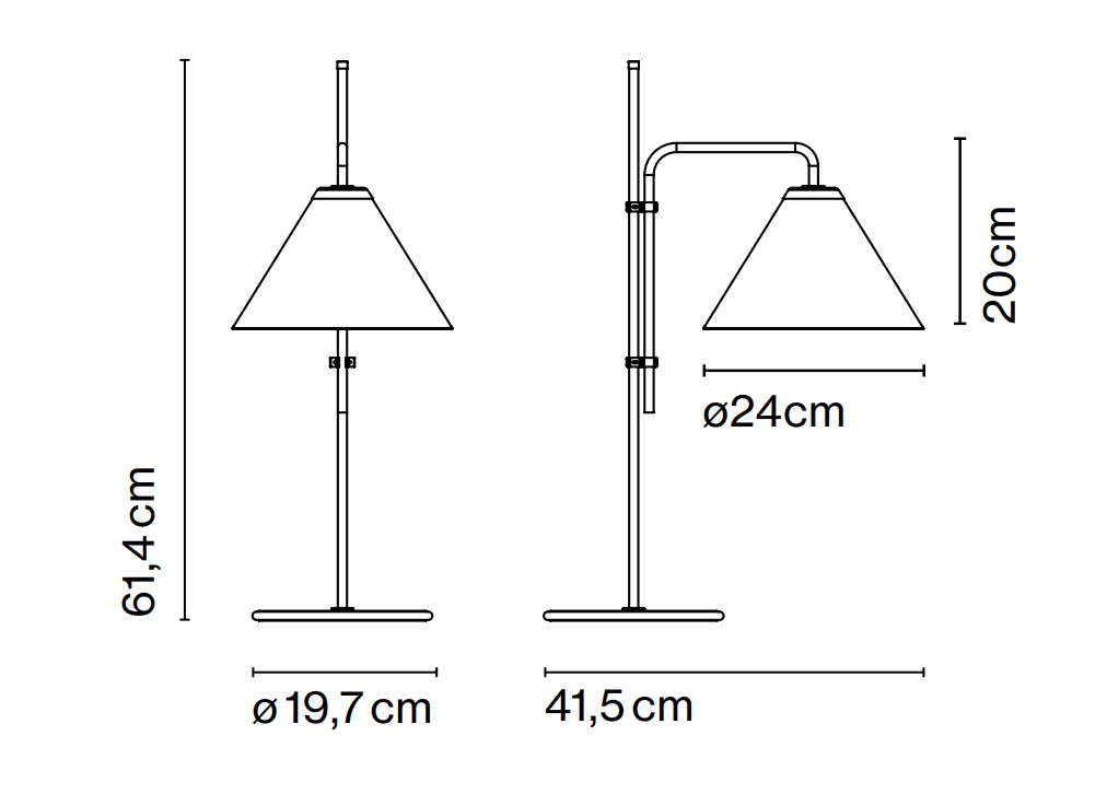 Plne rešpektujúc pôvodný dizajn, boli aktualizované len jeho proporcie. V verzii s textíliou, materiál na tienidle prepúšťa svetlo, čo umožňuje jeho filtrovanie a lepšie osvetlenie priestoru. Má rovnakú štruktúru ako originál, vďaka čomu je možné ľahko prispôsobiť lampu požadovanej výške. Podstatou oboch lámp zostáva ich jednoduchosť, ale tento projekt je elegantný a klasický, možno ešte rafinovanejší ako originál. Táto kolekcia je dostupná v podlahovej, stolovej a nástenné verzii a v dvoch farbách, béžovej alebo bielej, s čiernou štruktúrou.