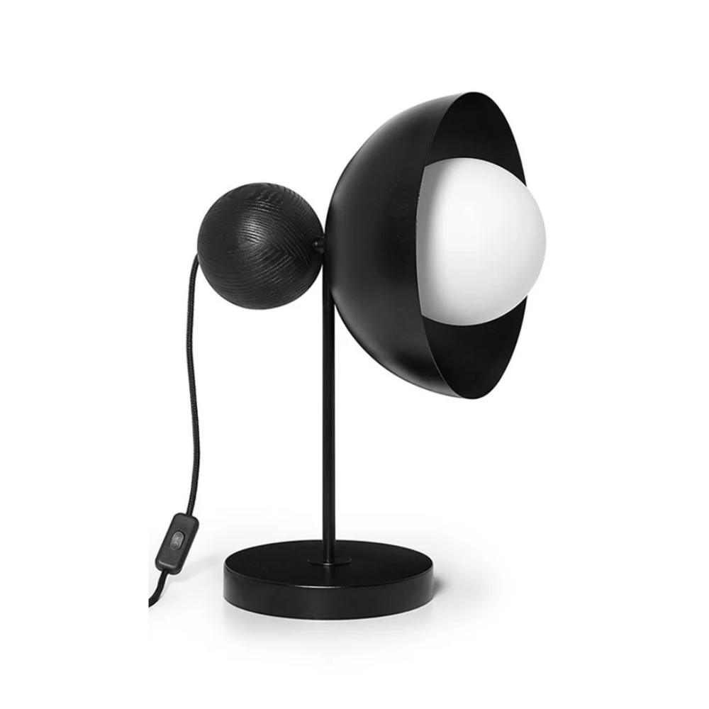 Stolná lampa Kello je návrh, ktorý spája surový minimalizmus s rafinovanou eleganciou prírodných materiálov. Charakteristickým prvkom tejto kolekcie je dekoratívna, drevená guľa z jasenu, ktorá subtílne kontrastuje s čiernou, kovovou konštrukciou a mliečne bielym, skleneným tienidlom. Harmonické spojenie tvarov a textúr robí lampu nielen zdrojom svetla, ale aj výrazným dekoratívnym prvkom.