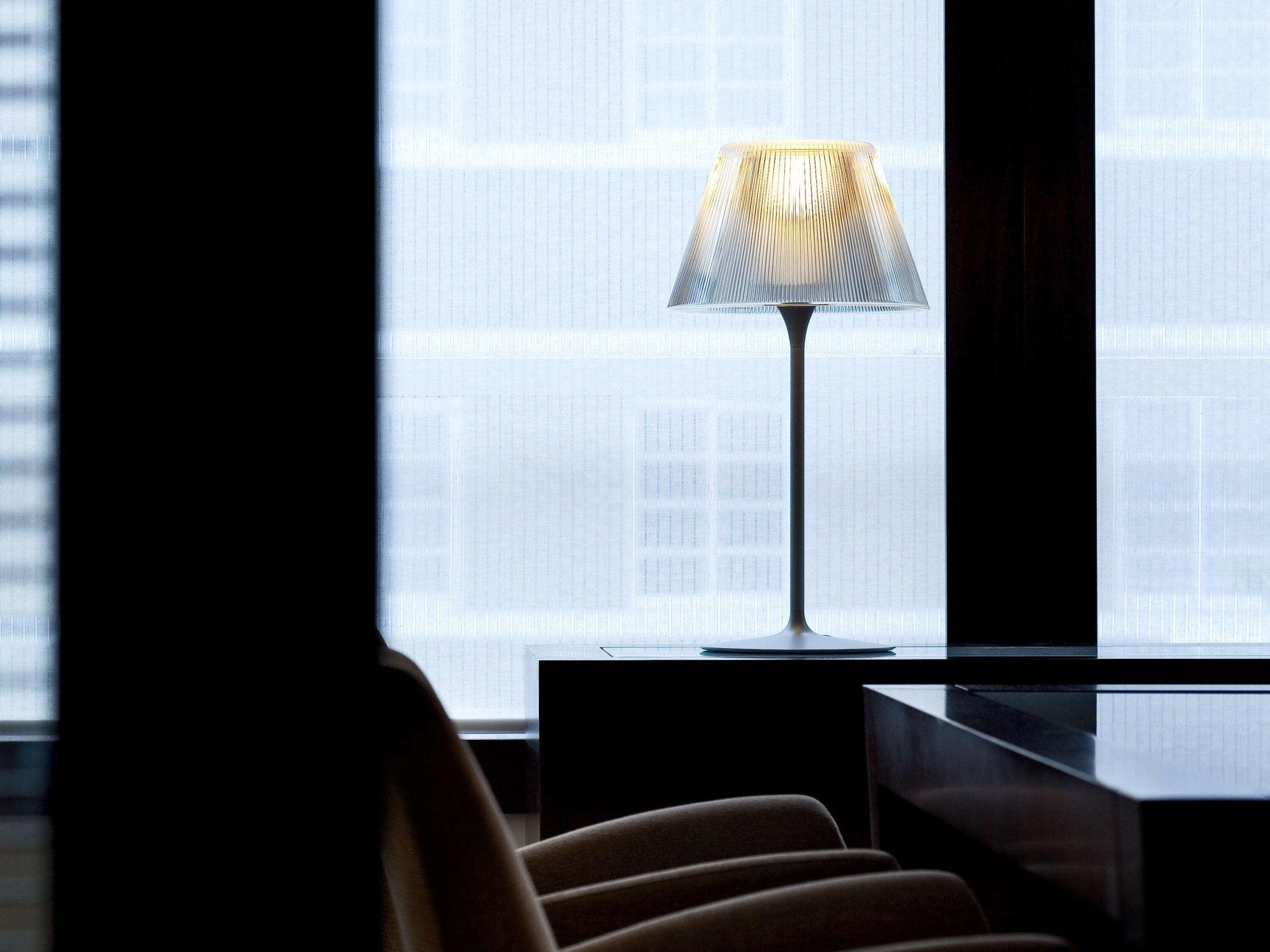 Stolná lampa Romeo Moon je jednoduché a krásne osvetlenie. Moderná forma sa spája s diskrétnou eleganciou. Použitie pruhovaného tienidla dodáva lampe charakter a neobyčajný štýl. Stabilná noha zabezpečuje potrebnú oporu a pridáva vizuálnu ľahkosť celej konštrukcii.